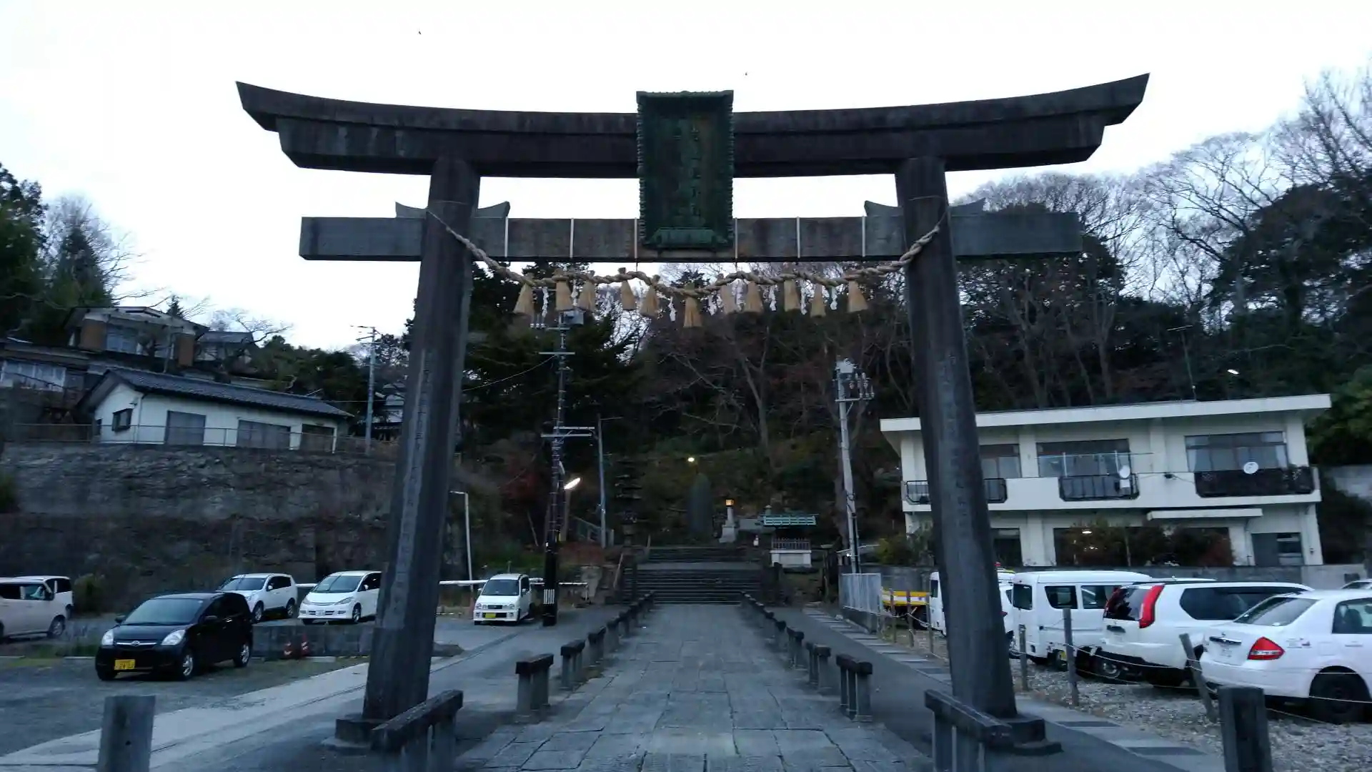 陸奥国一宮 急な石段(表参道)を登り境内へ。帰りは緩やかな坂を下りながら志波彦神社を参拝し、なおも緩やかな坂を下り大鳥居まで。逆コースなら脚が楽だったかも。
