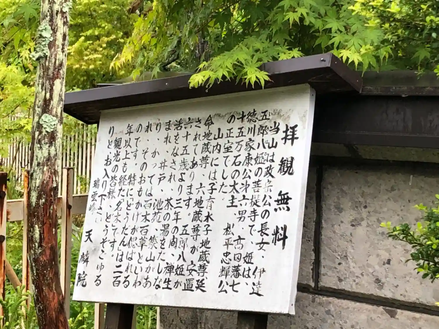天麟院の寺号標