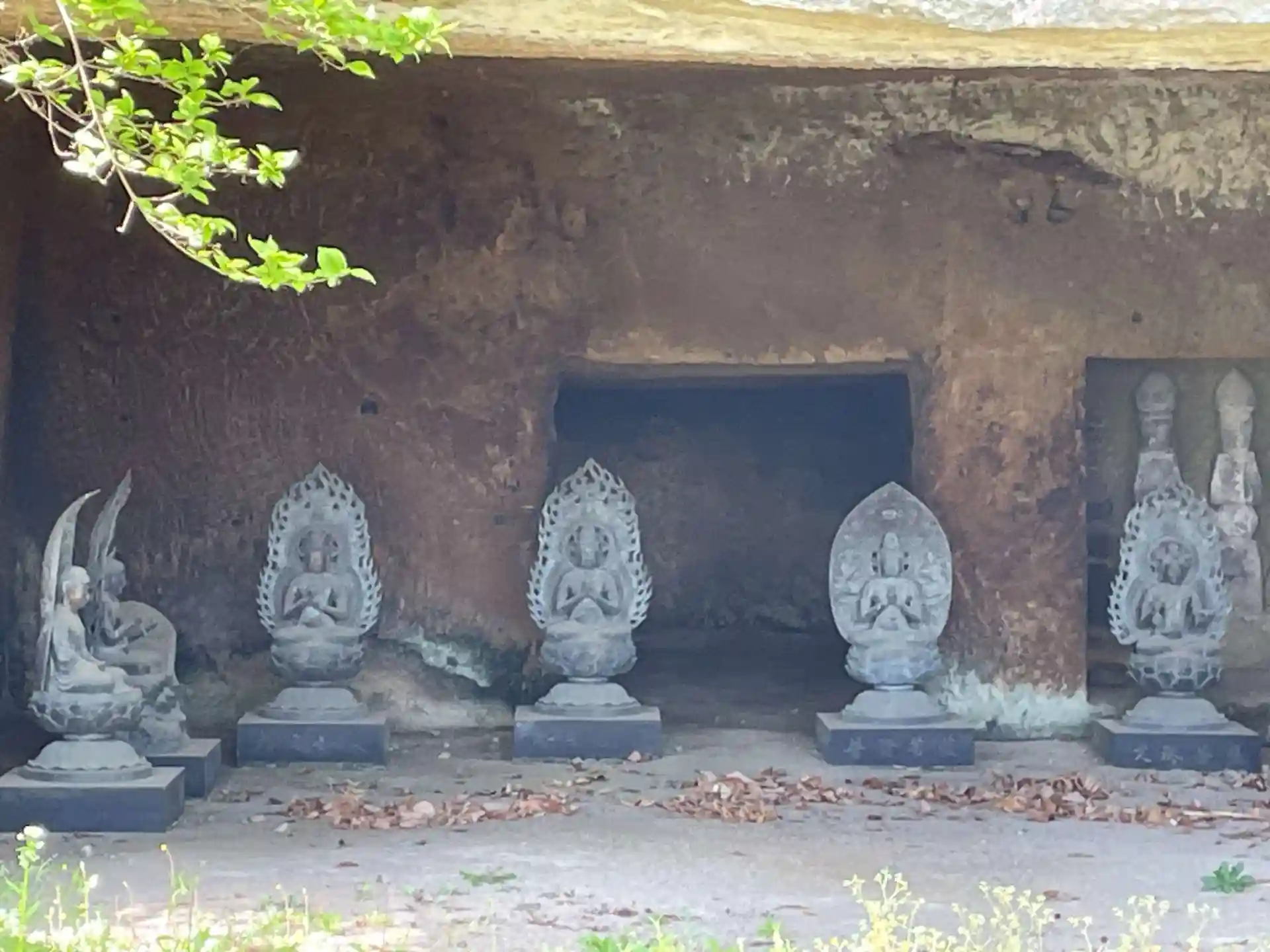 庫裡を出ると 境内と呼ぶには広すぎる敷地に 岩をくり抜いて墓石や石仏を置いてある場所を歩いて回りました。