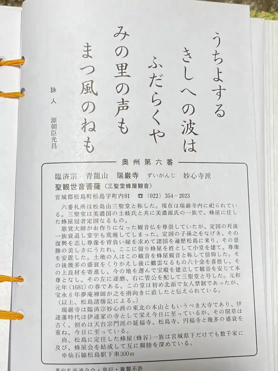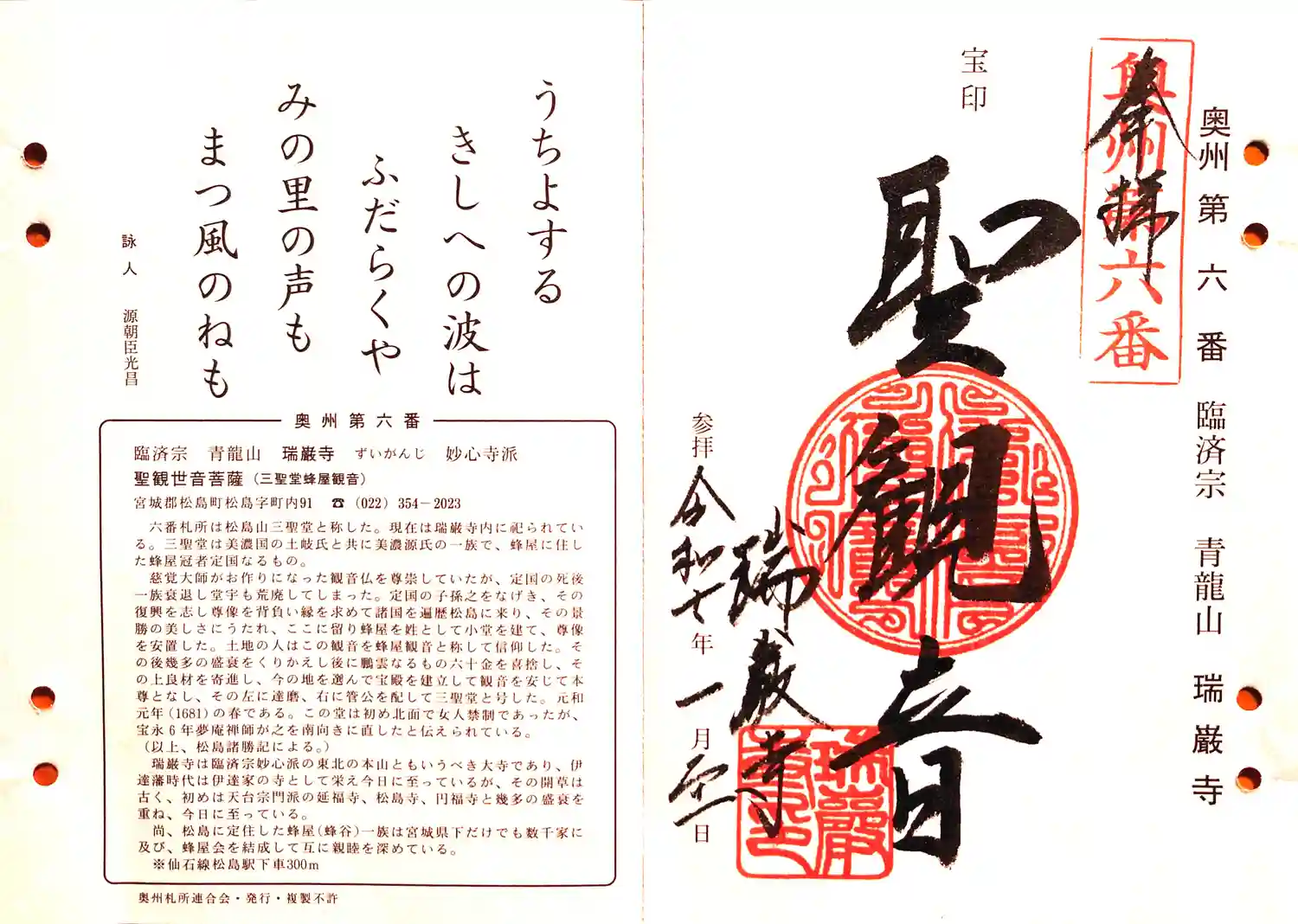 瑞巌寺御朱印帳裏側