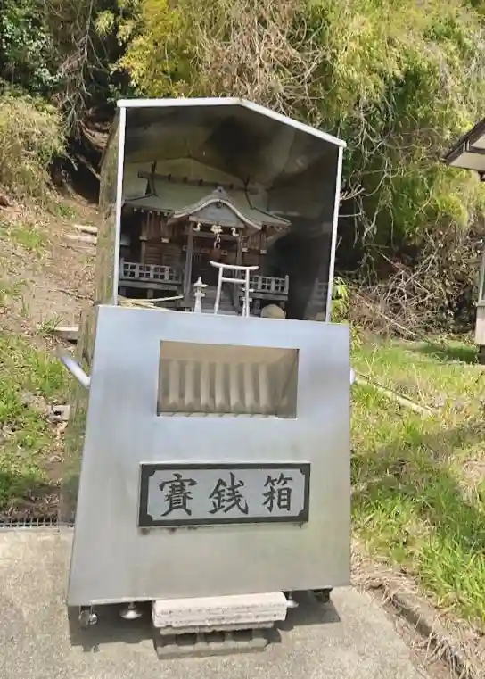鳥居のすぐ下に仮のものでしょうか、賽銭箱が置かれていました。