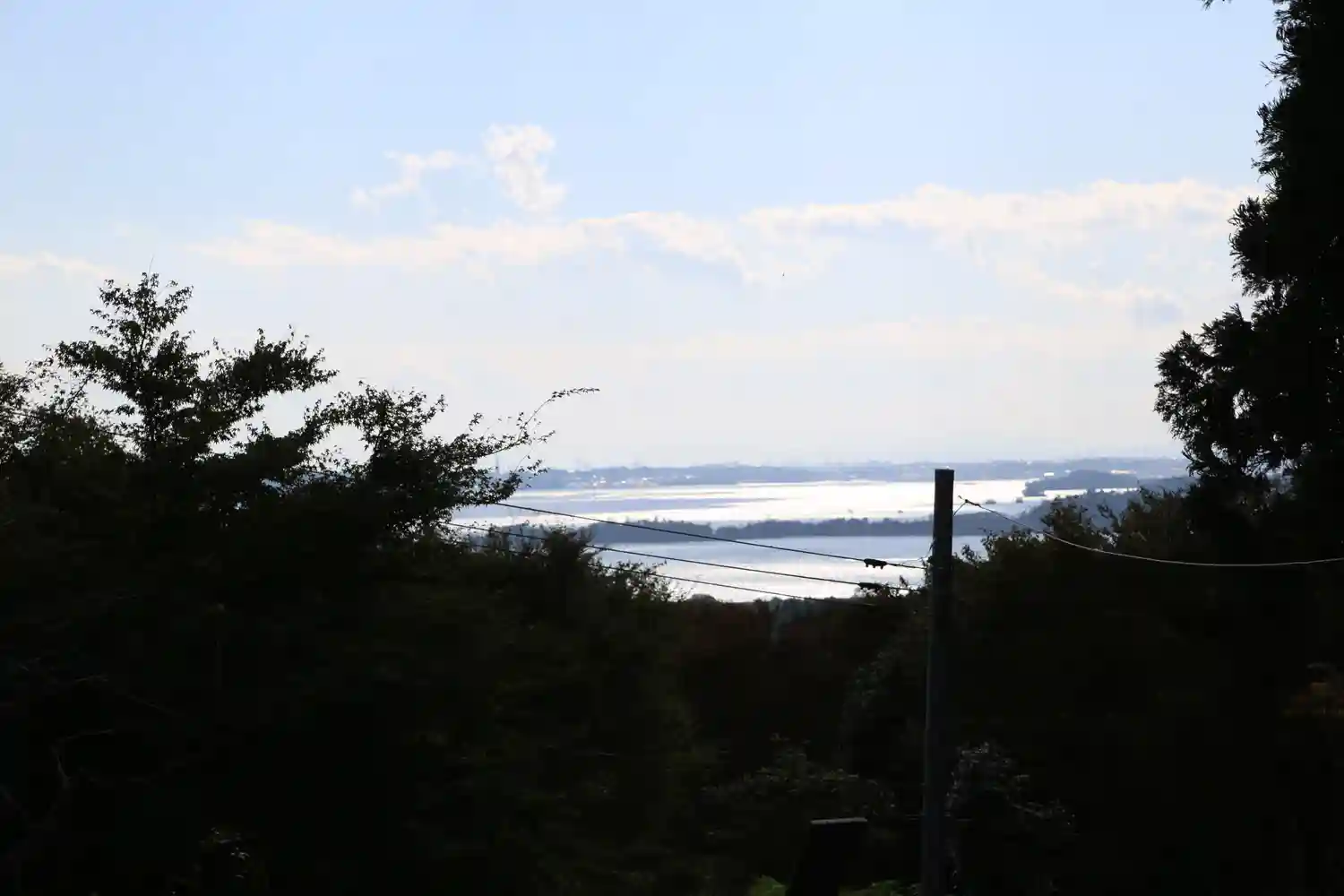 木の陰に見えるのが観音堂です。暗くなる前に参拝しようと慌ててました。