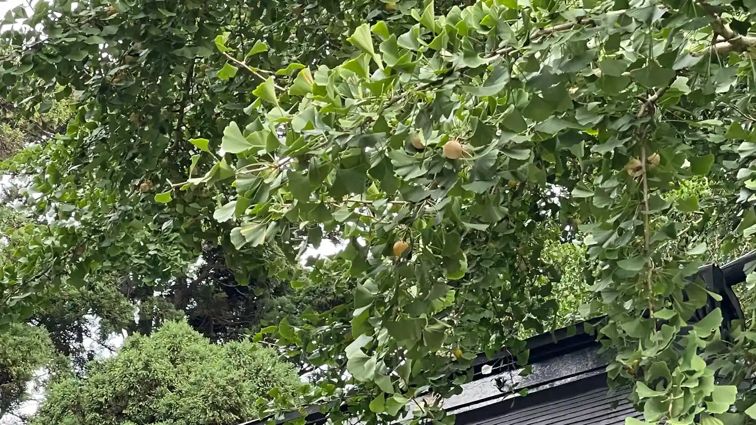 色々な木々に囲まれた静かな神社