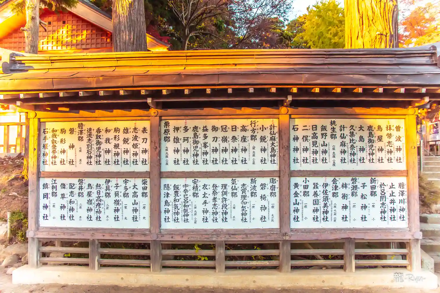 入り口となる鳥居を抜けた両側の神名額には、