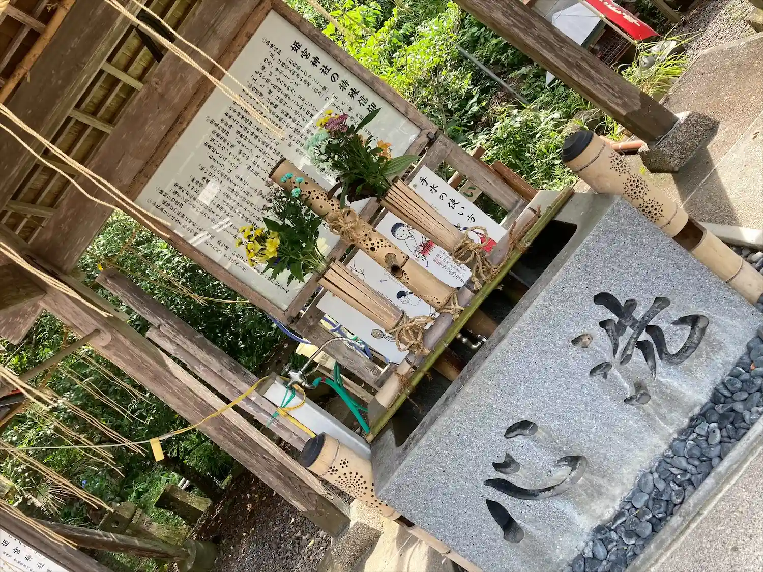こちらの神社の手水も、飾っておられました。花手水ですね。飾りが、和風な感じで素敵でした。