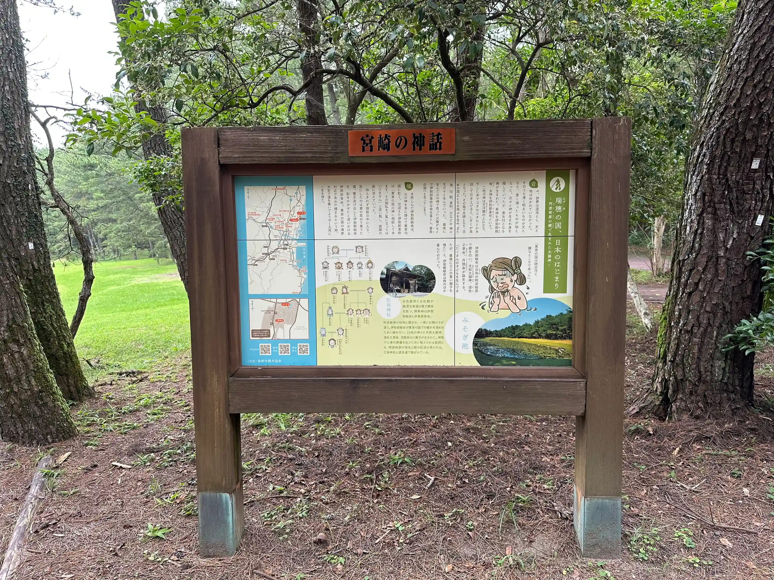 由緒:古来より、この地は竺紫日向橘小門之阿波岐原と呼ばれ、我が国最古の歴史書である古事記には、「伊邪那美尊が、火神迦具土神を生んだとき、亡くなってしまう 余りの悲しさに伊邪那岐尊は、黄泉の国まで追いかけてしまいましたが妻の変わり果てた姿を見て、黄泉の国より、逃げ出してしまいます。そして、伊邪那岐尊は穢れた体を清めるため、この地、阿波岐原にて、禊ぎを行います。その時、左目を洗うと天照大御神が、右目を洗うと、月読尊が鼻を洗うと、素戔嗚命が生まれてきました。」と記載され、以降、天孫降臨から神武東征にまで至る壮大な日向神話は、この地より始まったとされています。