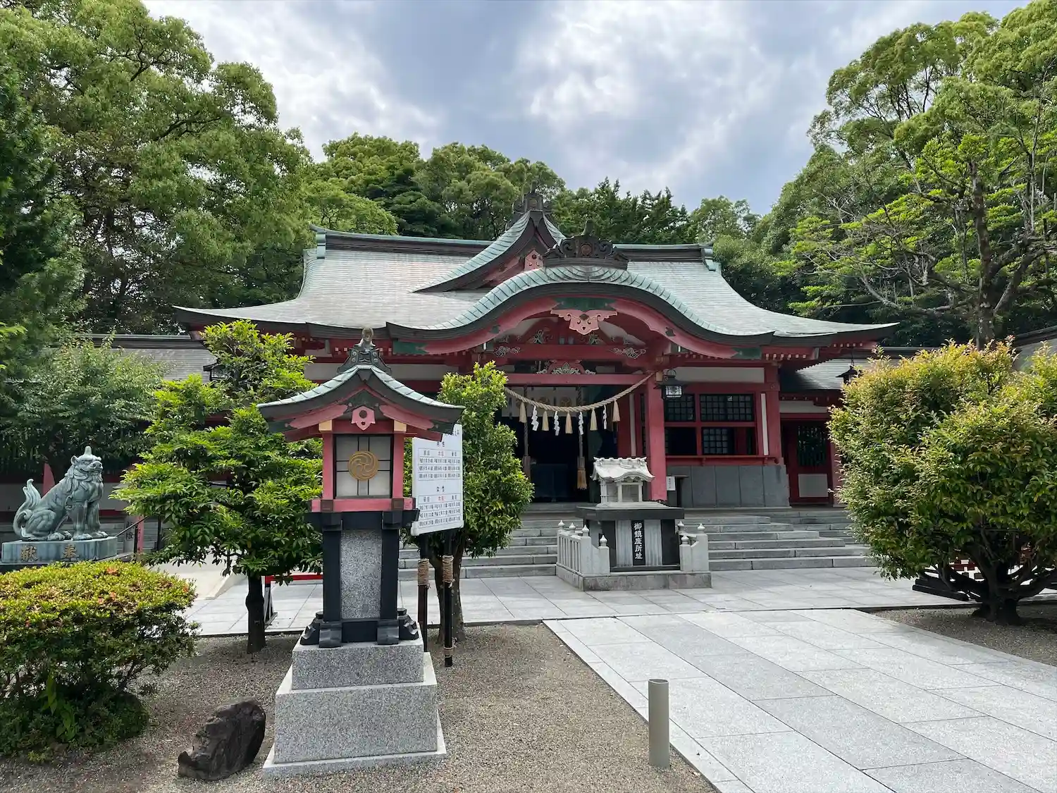 宮崎市街地の中心に鎮座する宮崎八幡宮。朱色の社殿も神門も綺麗でした。