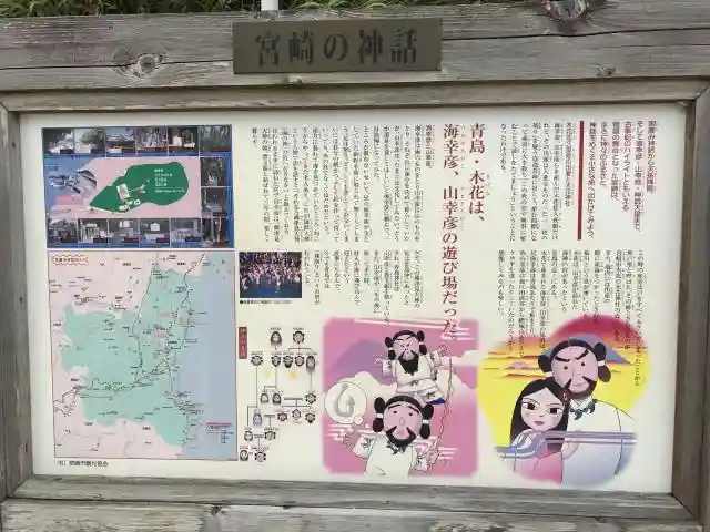 | ご由緒 | 天孫瓊々杵命の皇子彦火火出見命が、海積宮から御還幸の際の御宮居の跡として三神を奉祀し御神威を今日に伝えている。奉祀の年代は明らかでないが、国司巡視記「日向土産」(平安朝)に「嵯峨天皇の御宇奉崇青島大明神」と記されてあったといわれ(約千百九十九年前)、文亀(室町時代・約五百年前)以降は、藩主伊東家の崇敬厚く、社殿の改築、境内の保全に力を尽し、明治以後は御祭神の御威霊を仰ぎ熱帯植物繁茂する国内絶無の霊域をたずねる人々いよいよ多く、縁結・安産・航海・交通安全の神として、御神威は益々輝き今日に至っている。 |