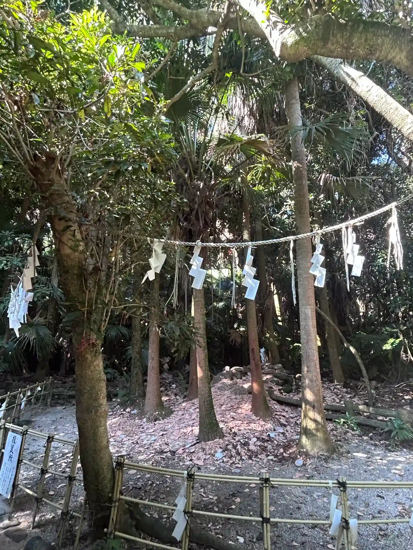 島の中央にあるこの辺りは、弥生式土器や勾玉などが出土しており、古代祭祀が行われていたと伝わる正真正銘のパワースポットです。