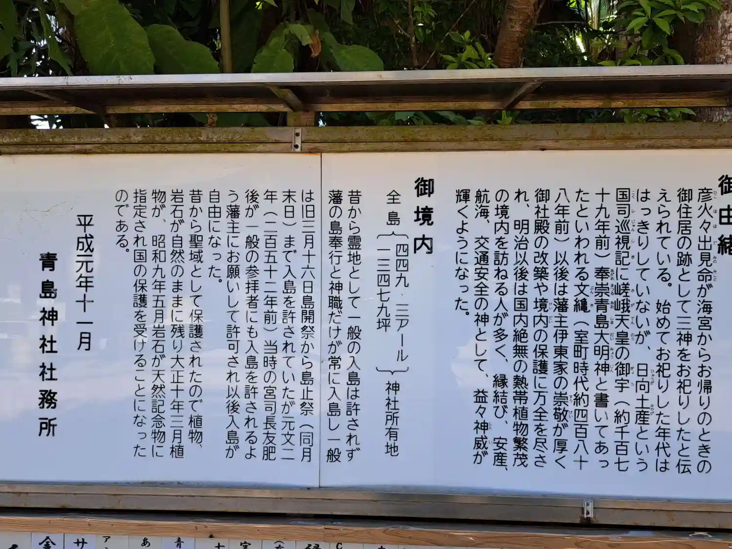 日向之国、青島神社は、亜熱帯の植物に囲まれた厳かな神社でした。