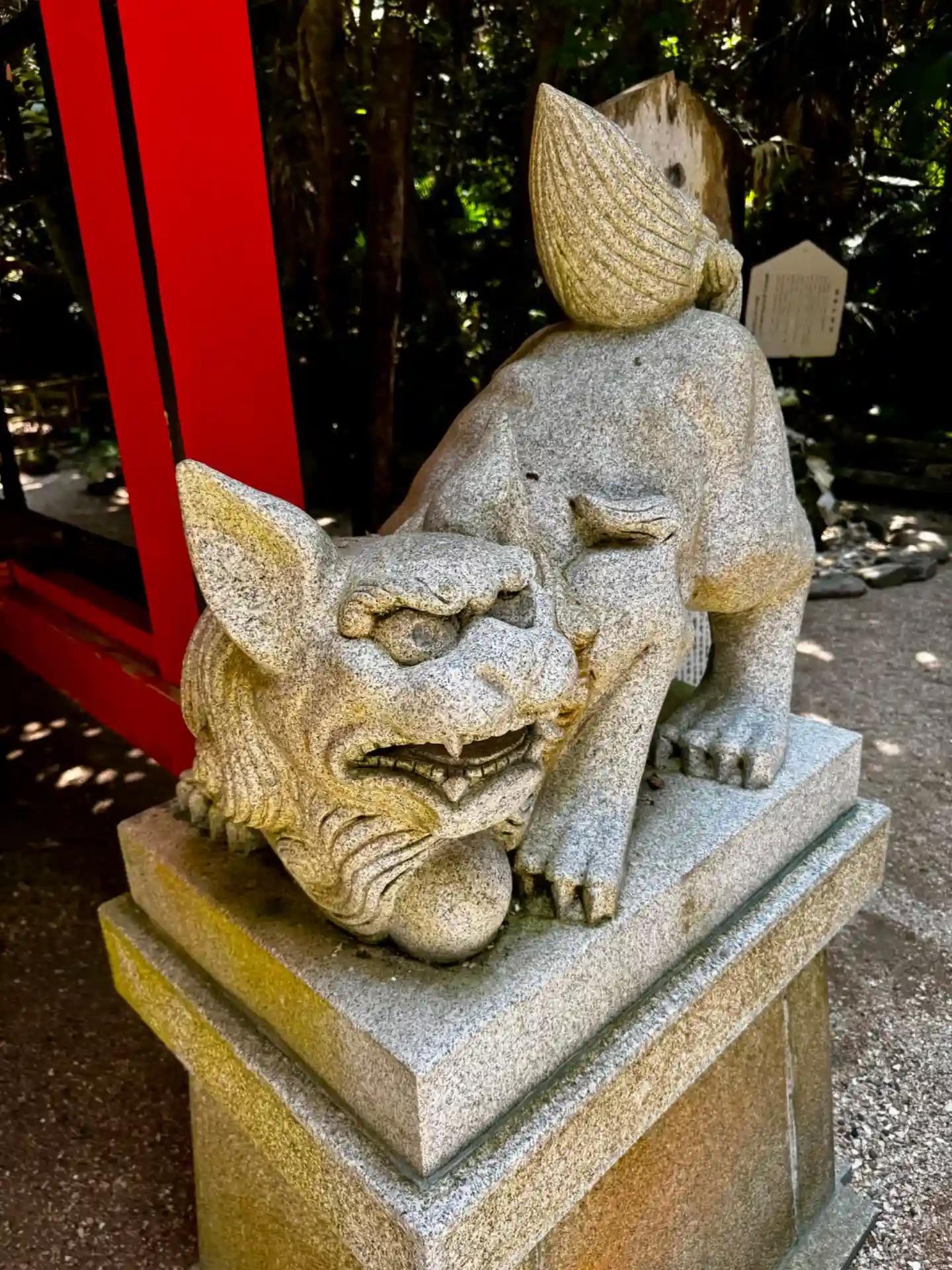 左側の<狛犬>。小型愛玩犬のような可愛らしいルックス。