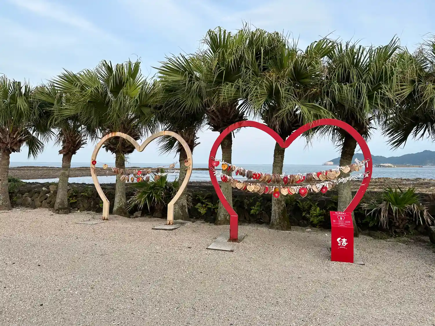 入り口右手に見えるハートのオブジェは、「天の御柱巡り」と名付けられた縁結びスポット。女子旅やカップルまで人気の高い「インスタ映え」ができる場所と知られているようです