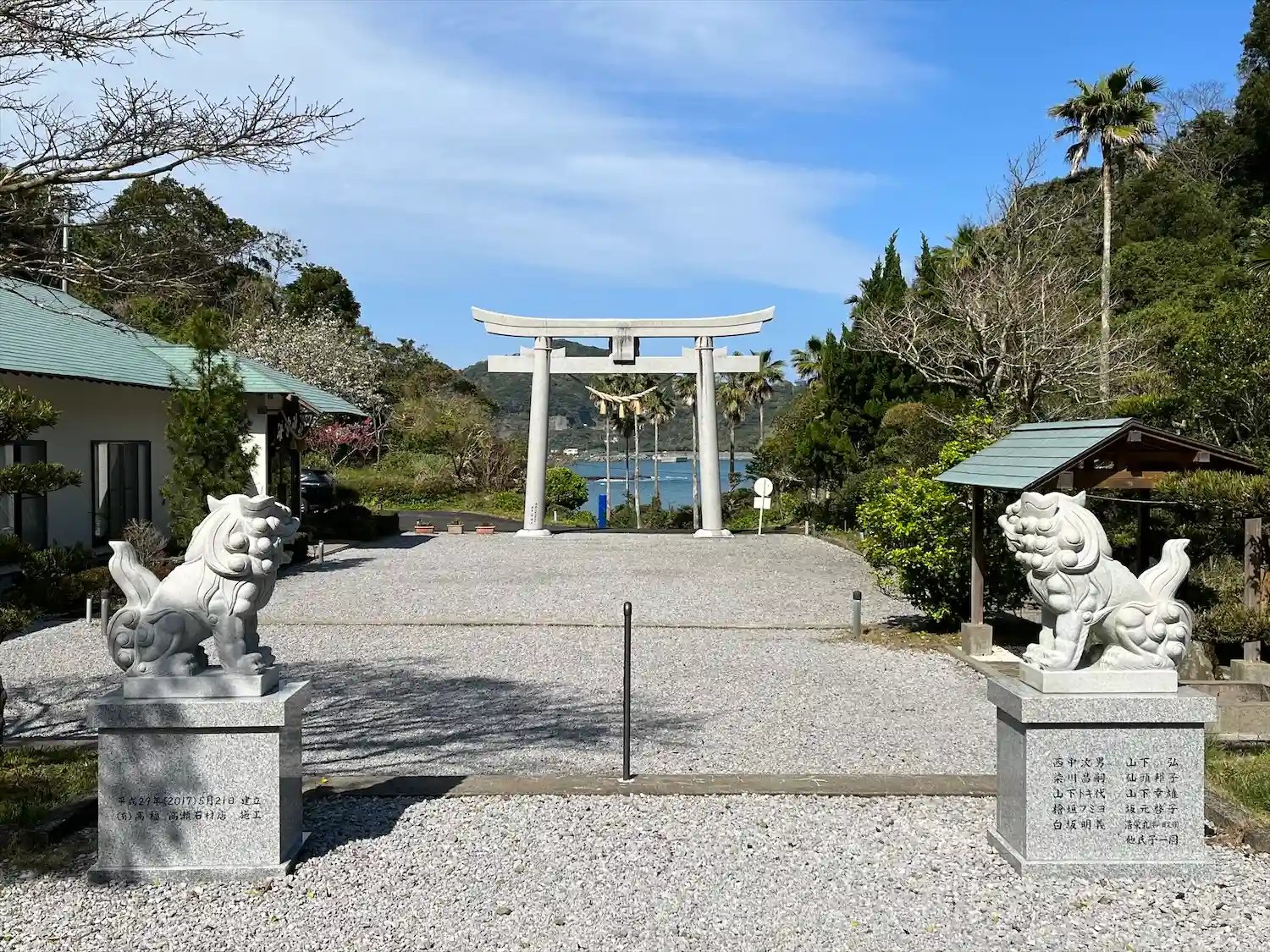 参拝後、振り返った際に見える鳥居の奥の海が綺麗でした。