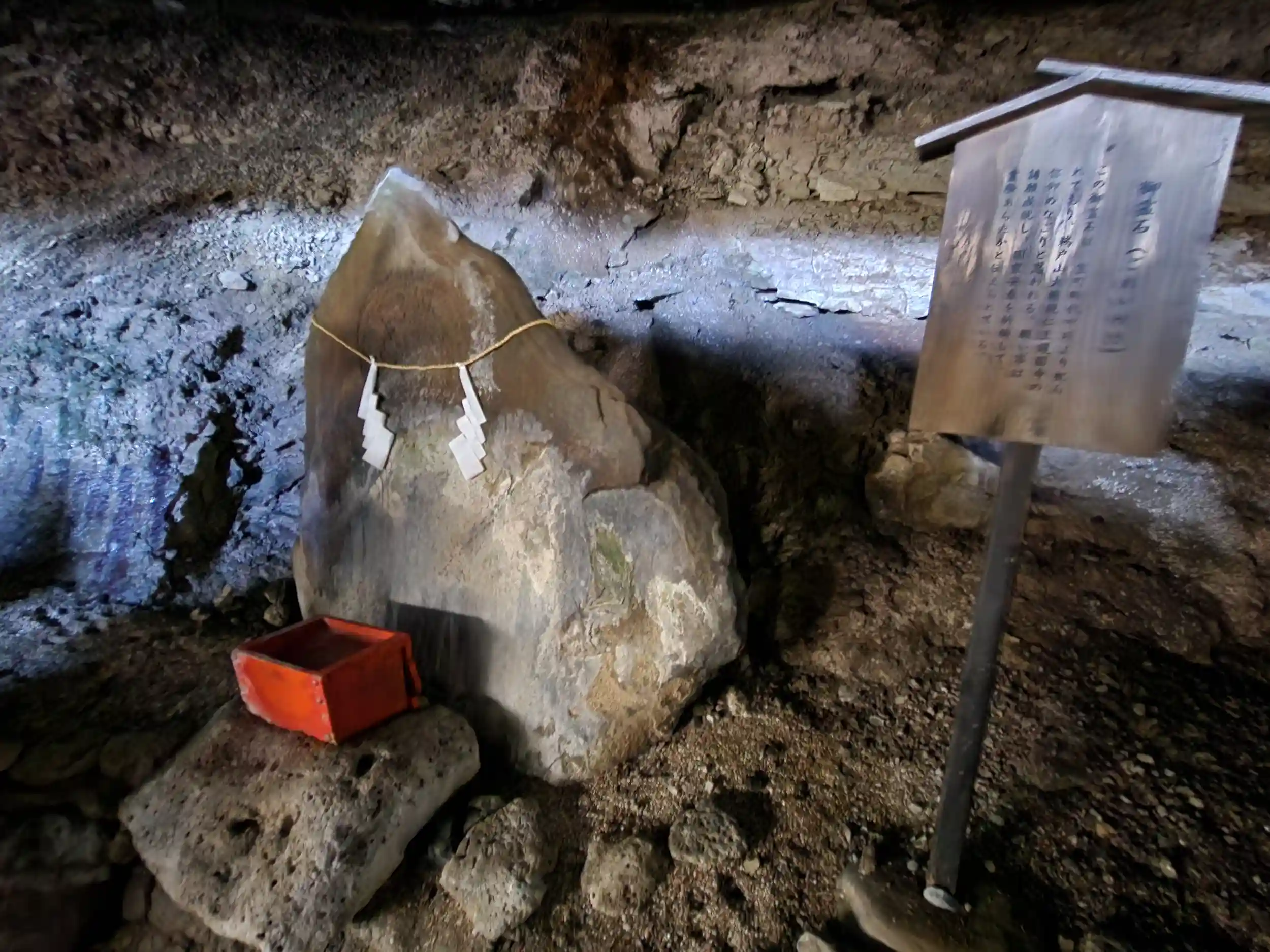 豊玉姫が主祭神である日子波瀲武鸕鷀草葺不合尊をお産みになり、育児のため両乳房をご神窟にくっつけて行かれたと云われています。