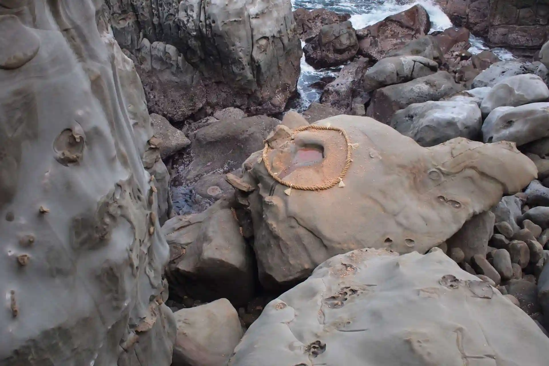 参道を下る感じで洞窟に入りそこに社殿があるというのが