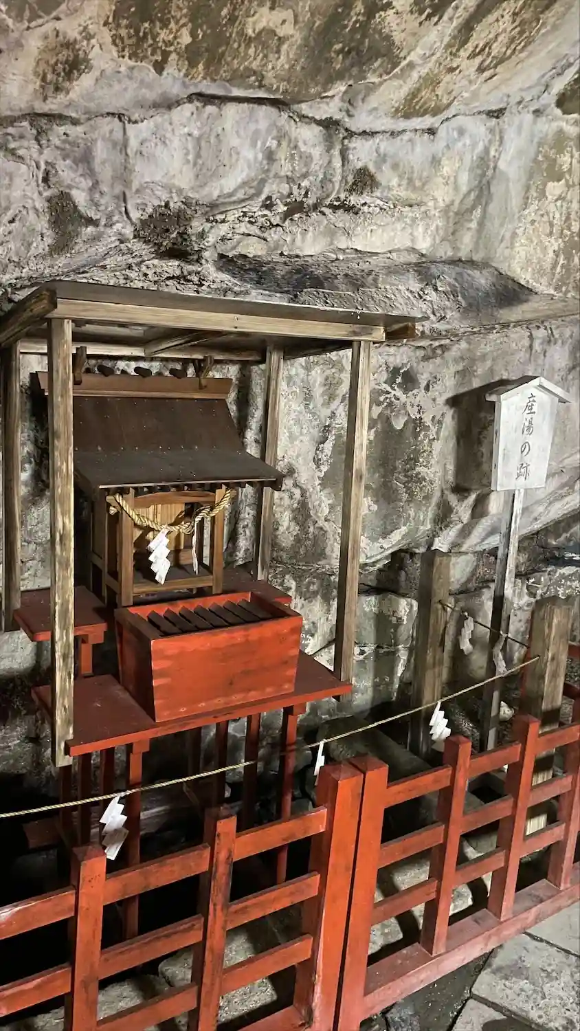 断崖絶壁の岩窟の中に社殿があります。