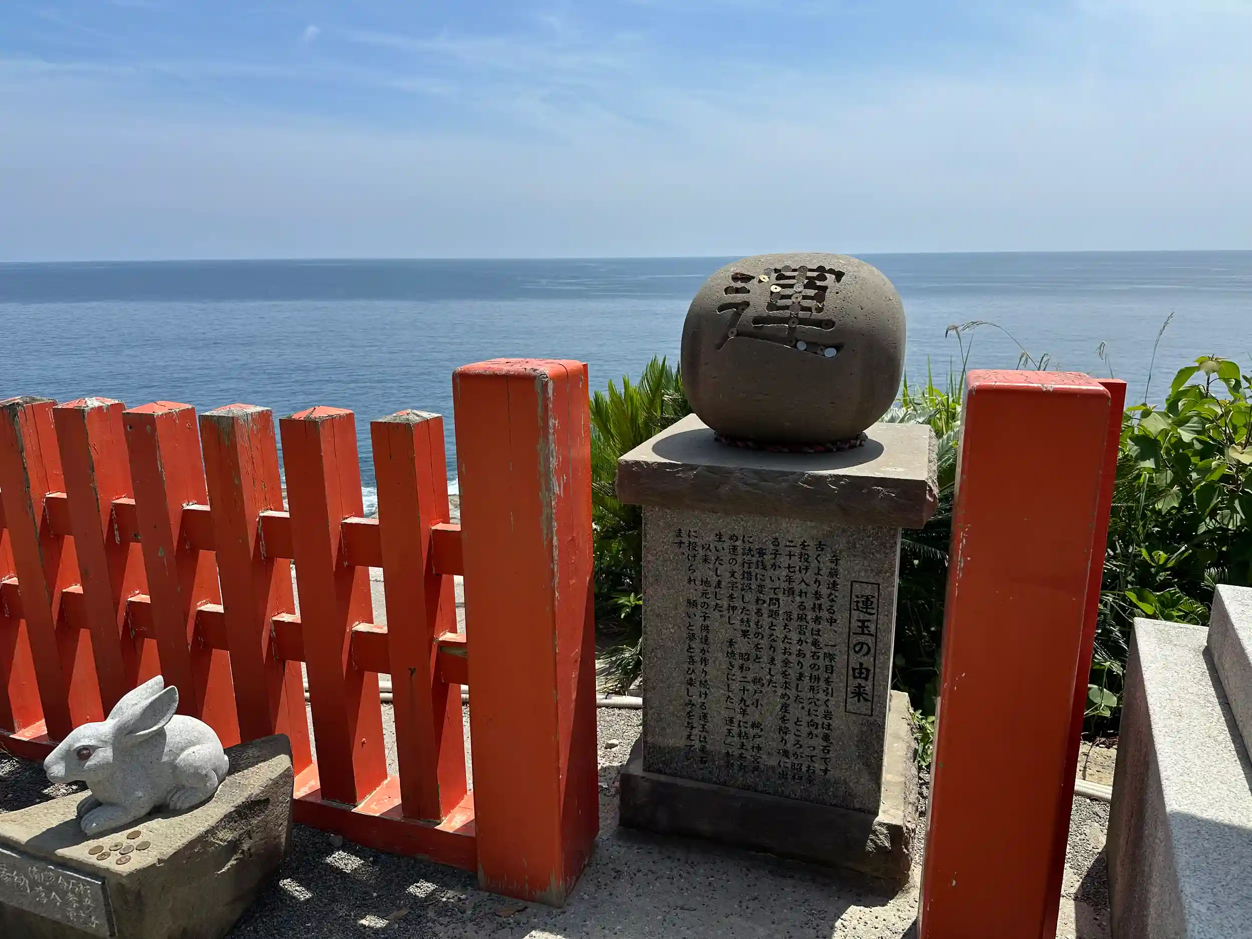 鵜戸神宮は「運玉投げ」の神事でも知られています。本殿前の広場から、男性は左手、女性は右手で願いを込めて「運玉」を投げてみましょう。約12m先にある「亀石」と呼ばれる岩のくぼみに運玉が入れば願いが叶うそう!ぜひチャレンジして「運」を引き寄せてみてはいかがでしょうか。ウサギをモチーフにした愛らしい絵馬も人気です。