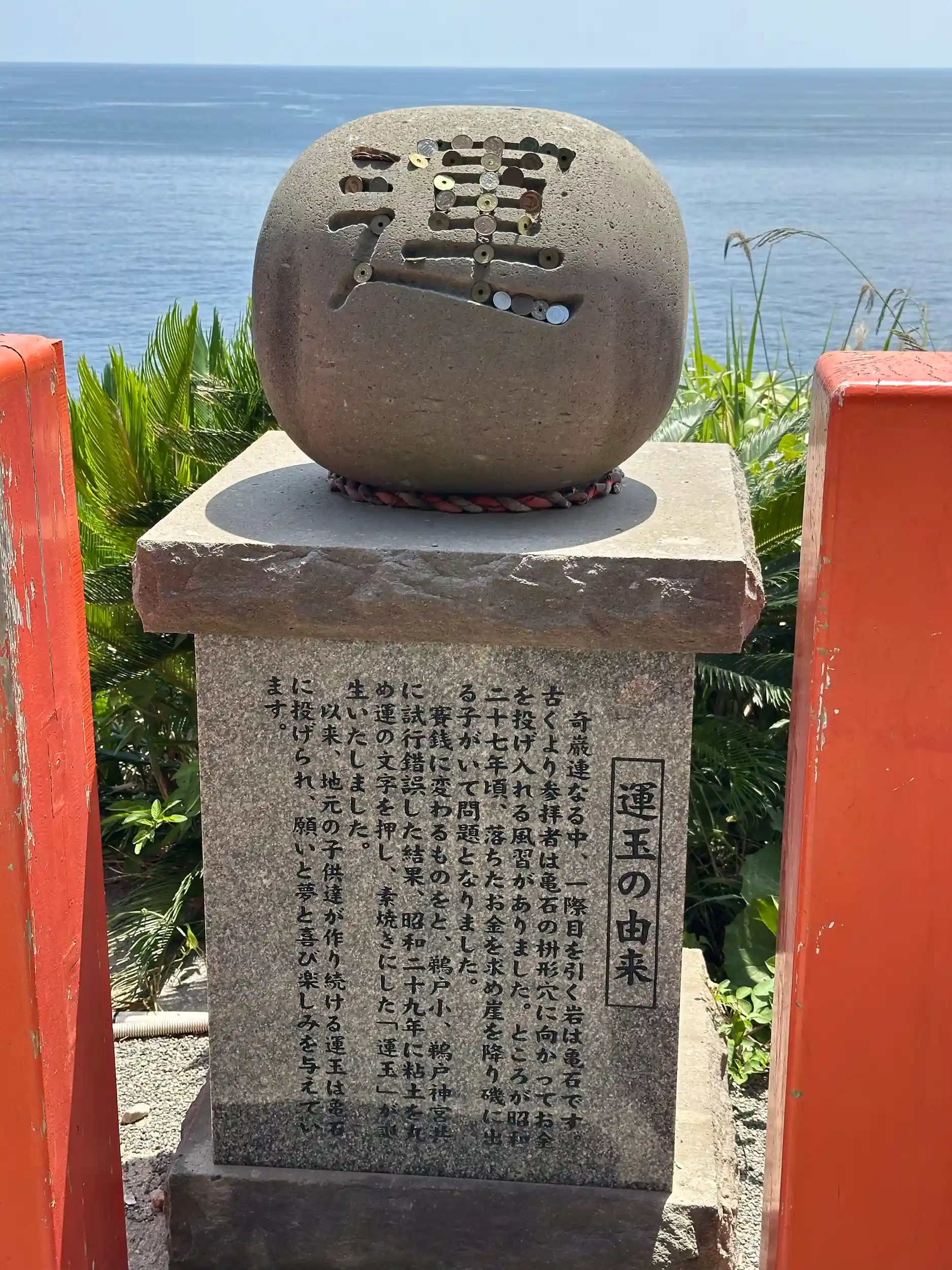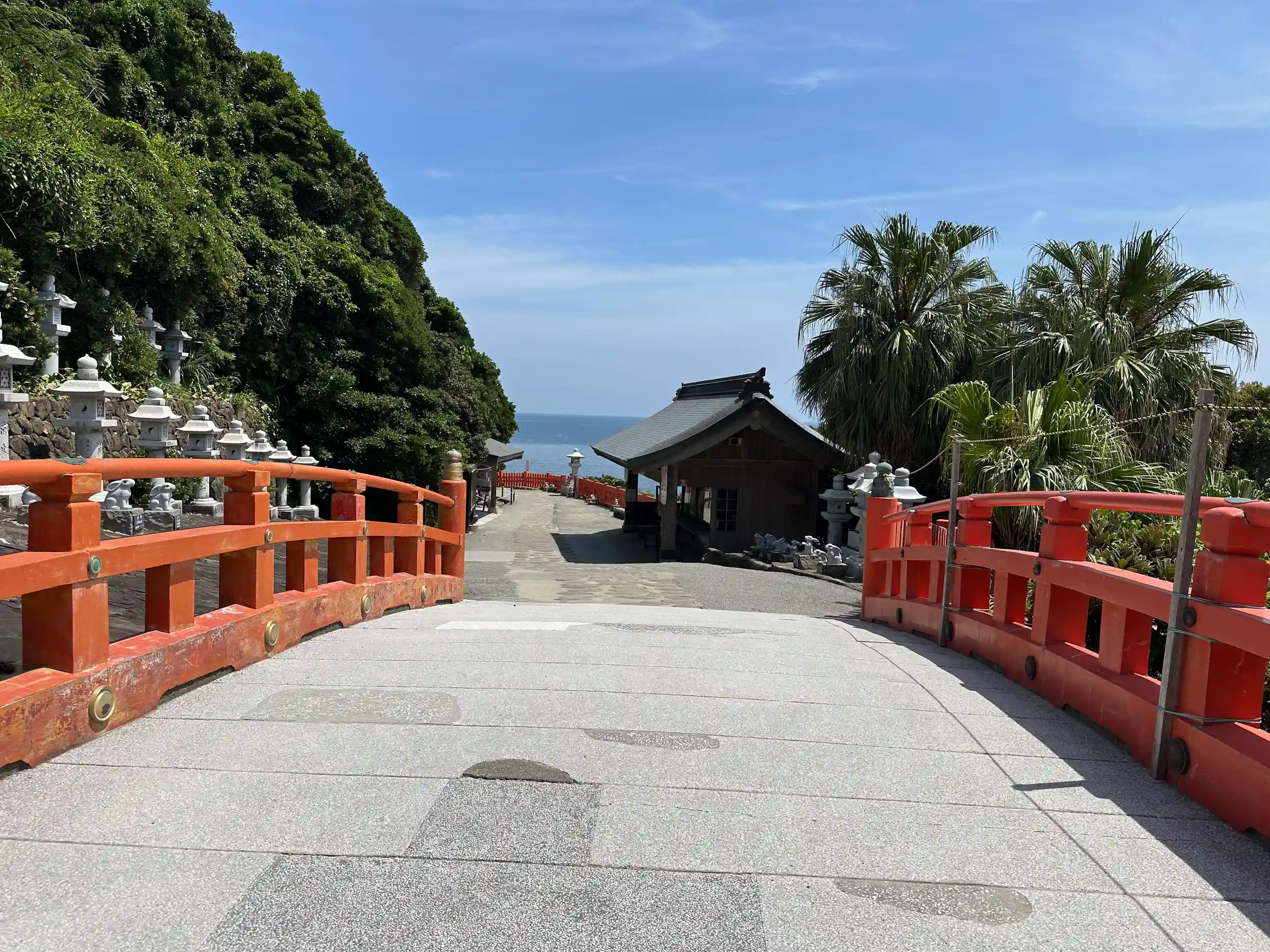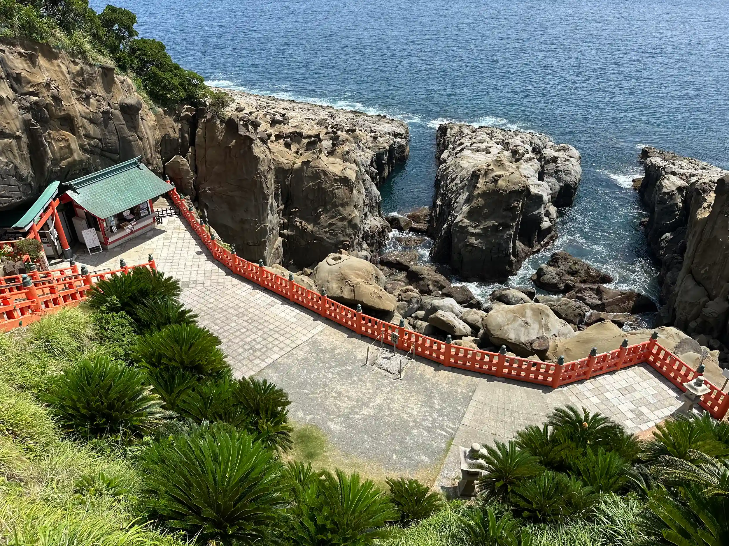 参道からは眼前に雄大な日向灘が広がり、見ごたえある奇岩が立ち並びます。2017(平成29)年には鵜戸神宮を含む一帯が「鵜戸」の名で国の名勝に指定されました。
