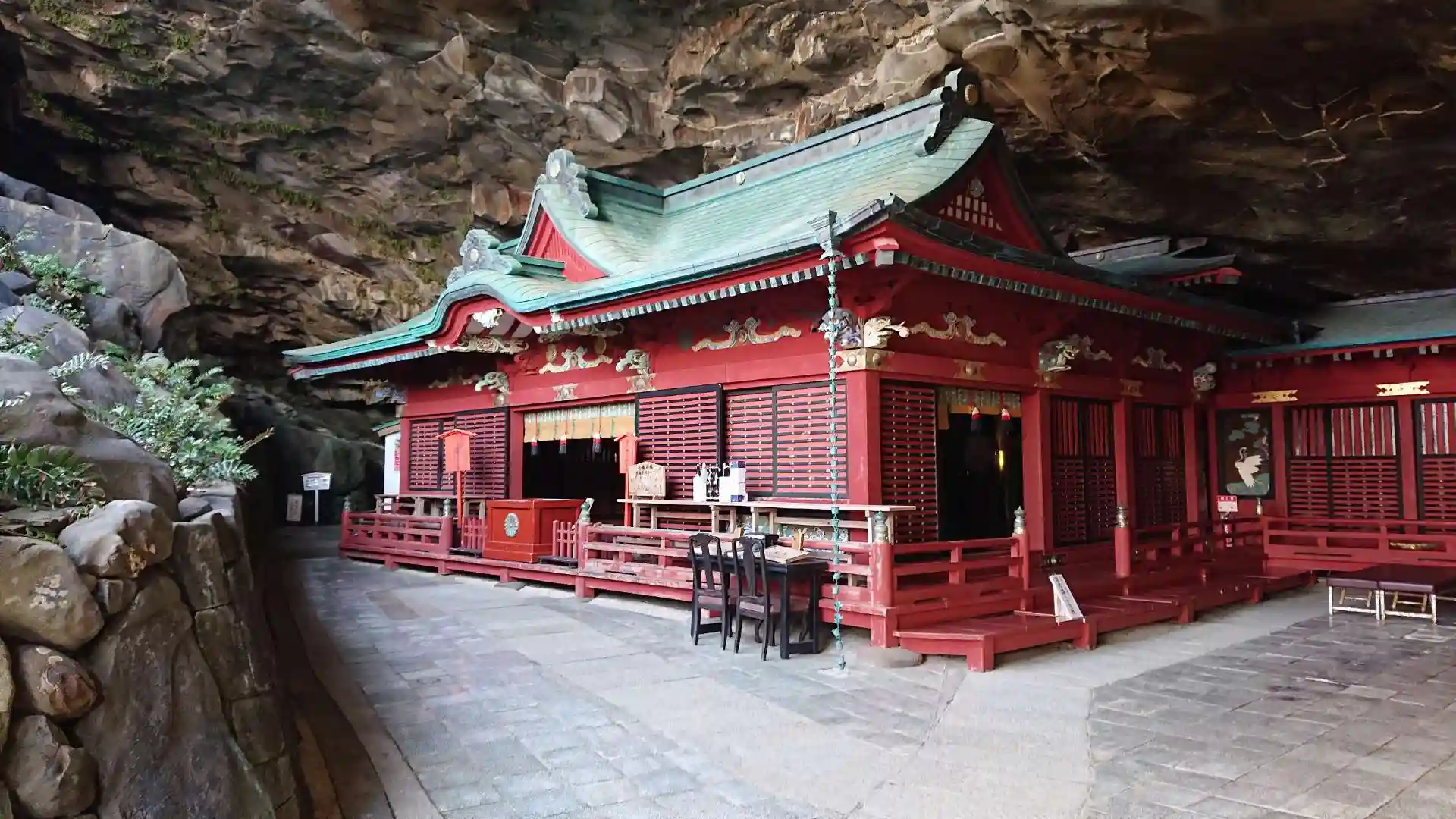 海の豪快な景色と洞窟のような不思議な空間が神々しい神社です。