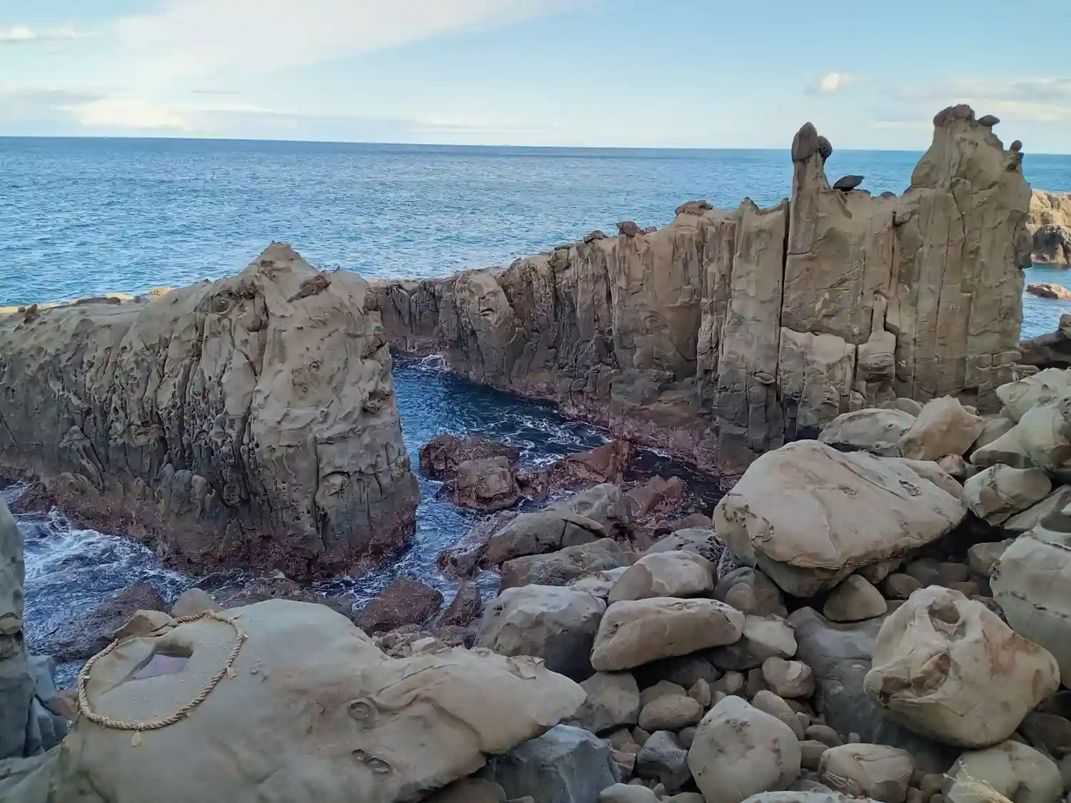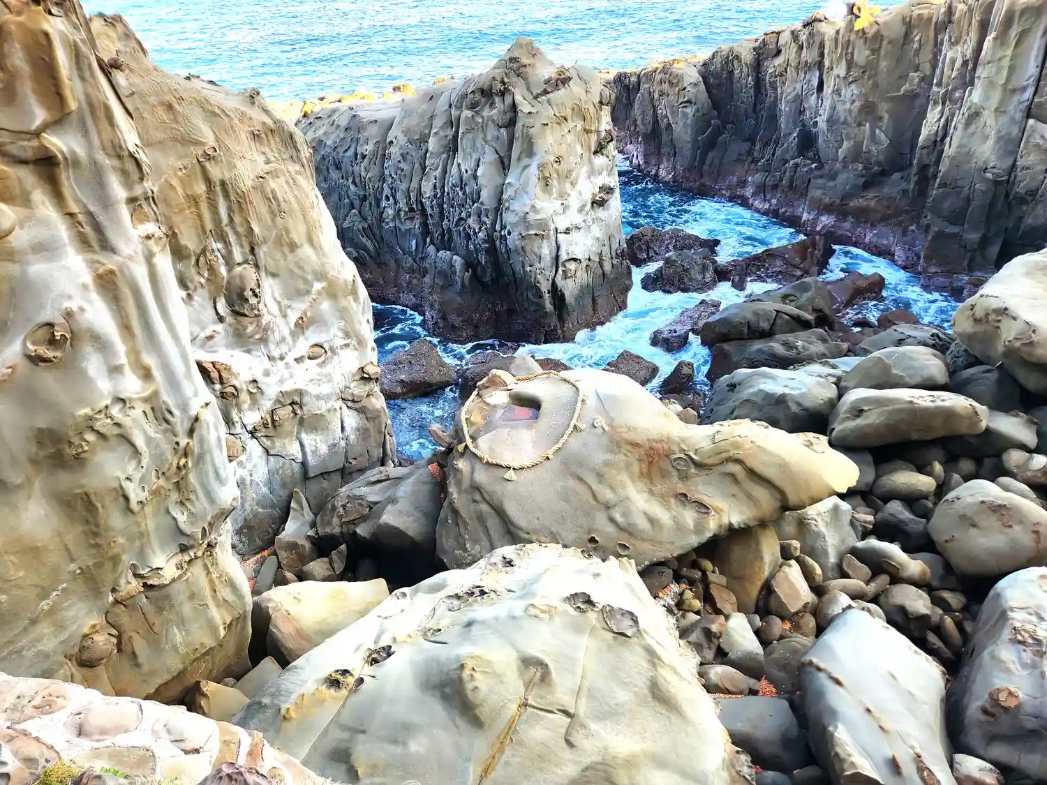 海と空の青色と岩窟…