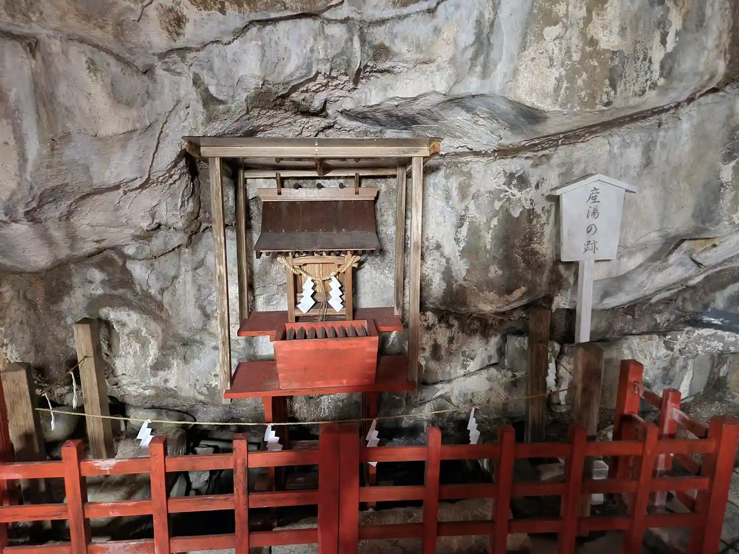 洞窟にお社がある、不思議なお宮。