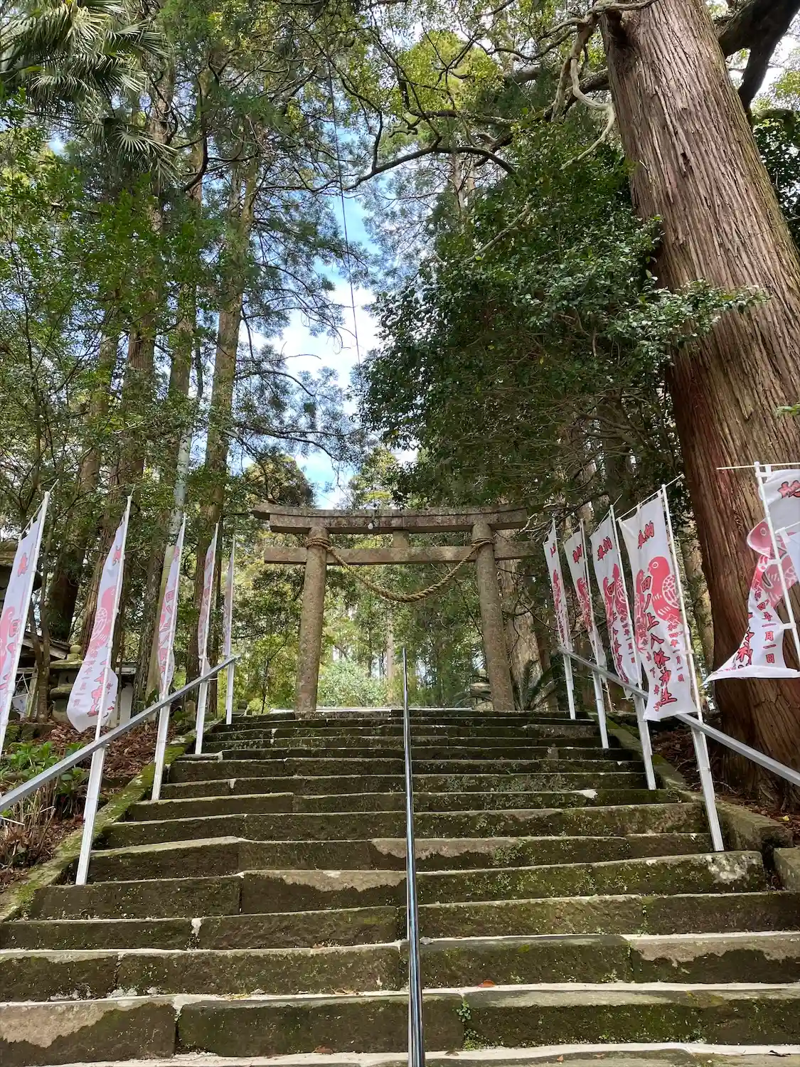階段を上っている途中に御神木のクスノキがありました 樹齢400年を越える立派な木です