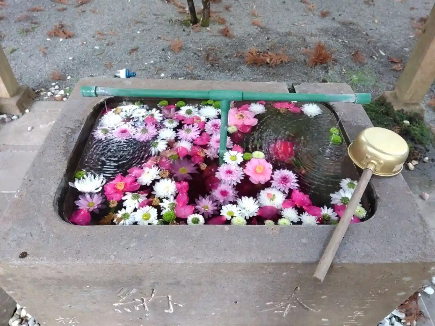 本殿前の朱塗りの鳥居と手水舎です