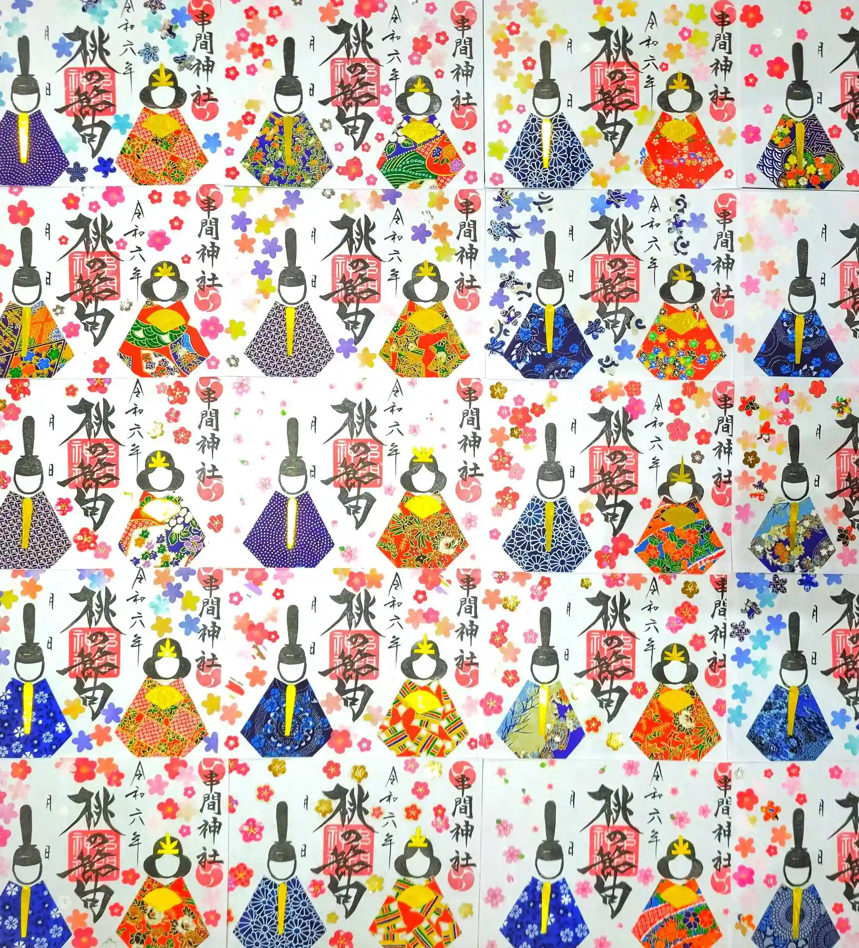 雛飾りの方は、一枚一枚千代紙を張り付けて作成しておりますので、同じものはございません‼️