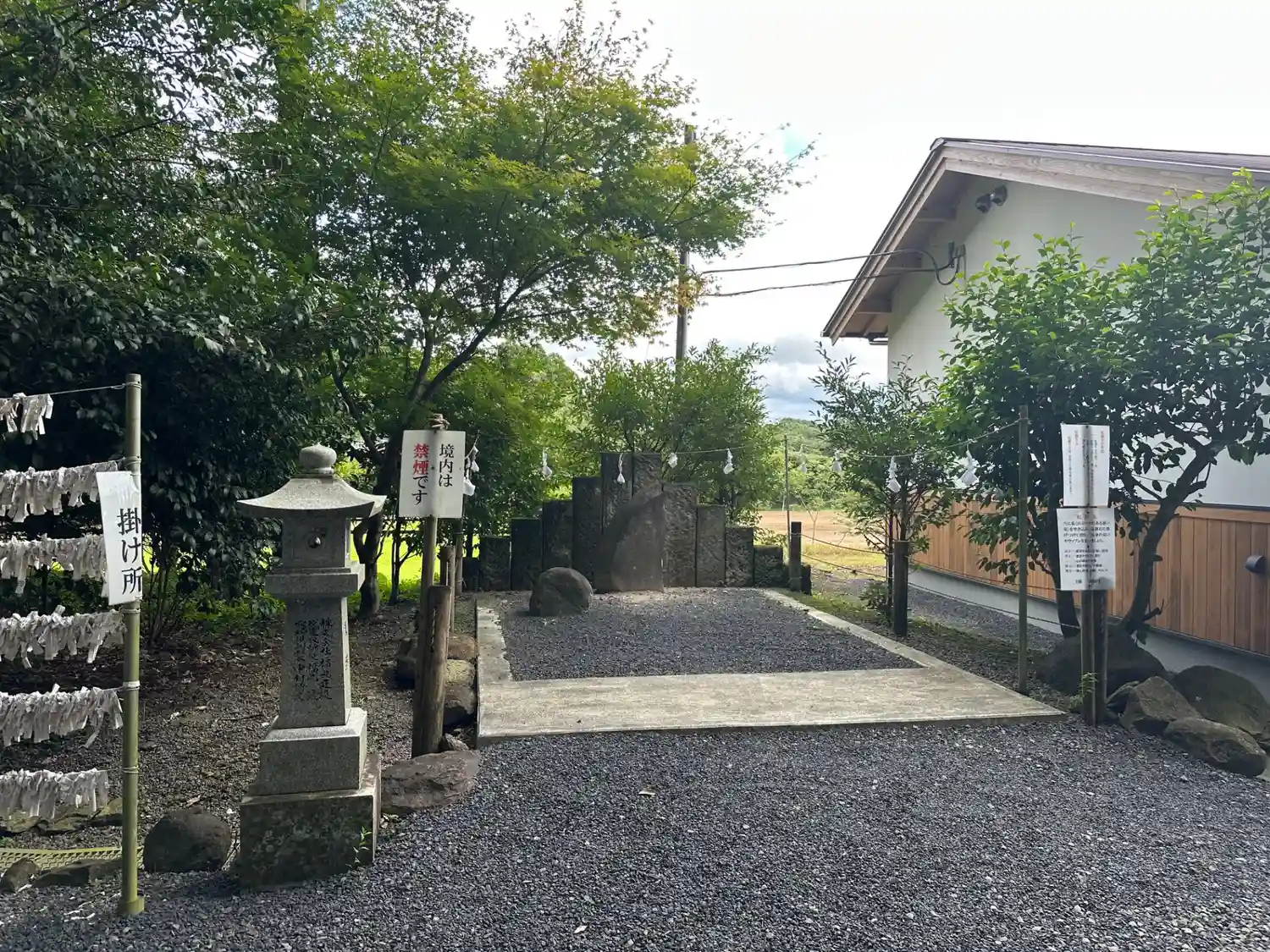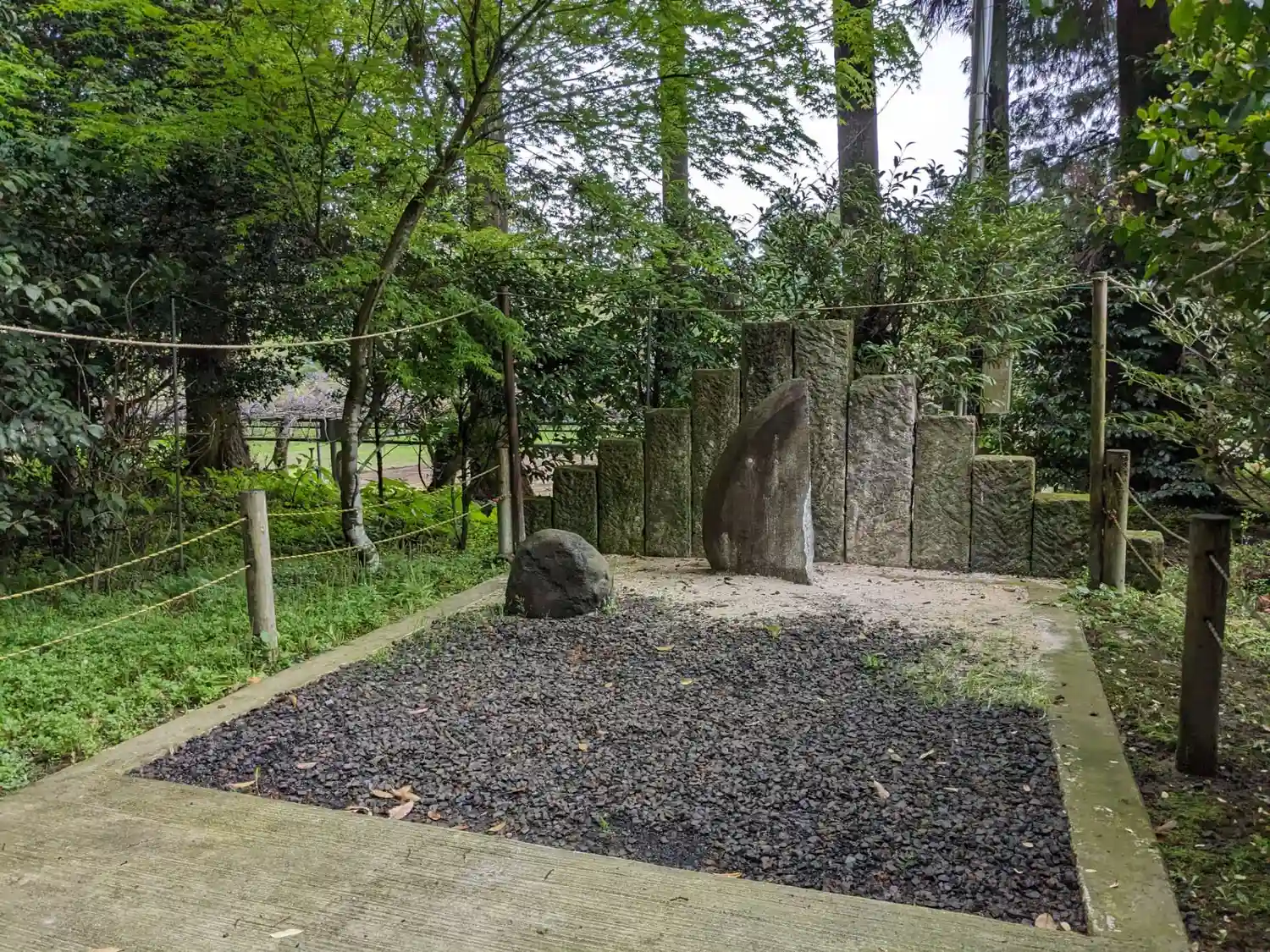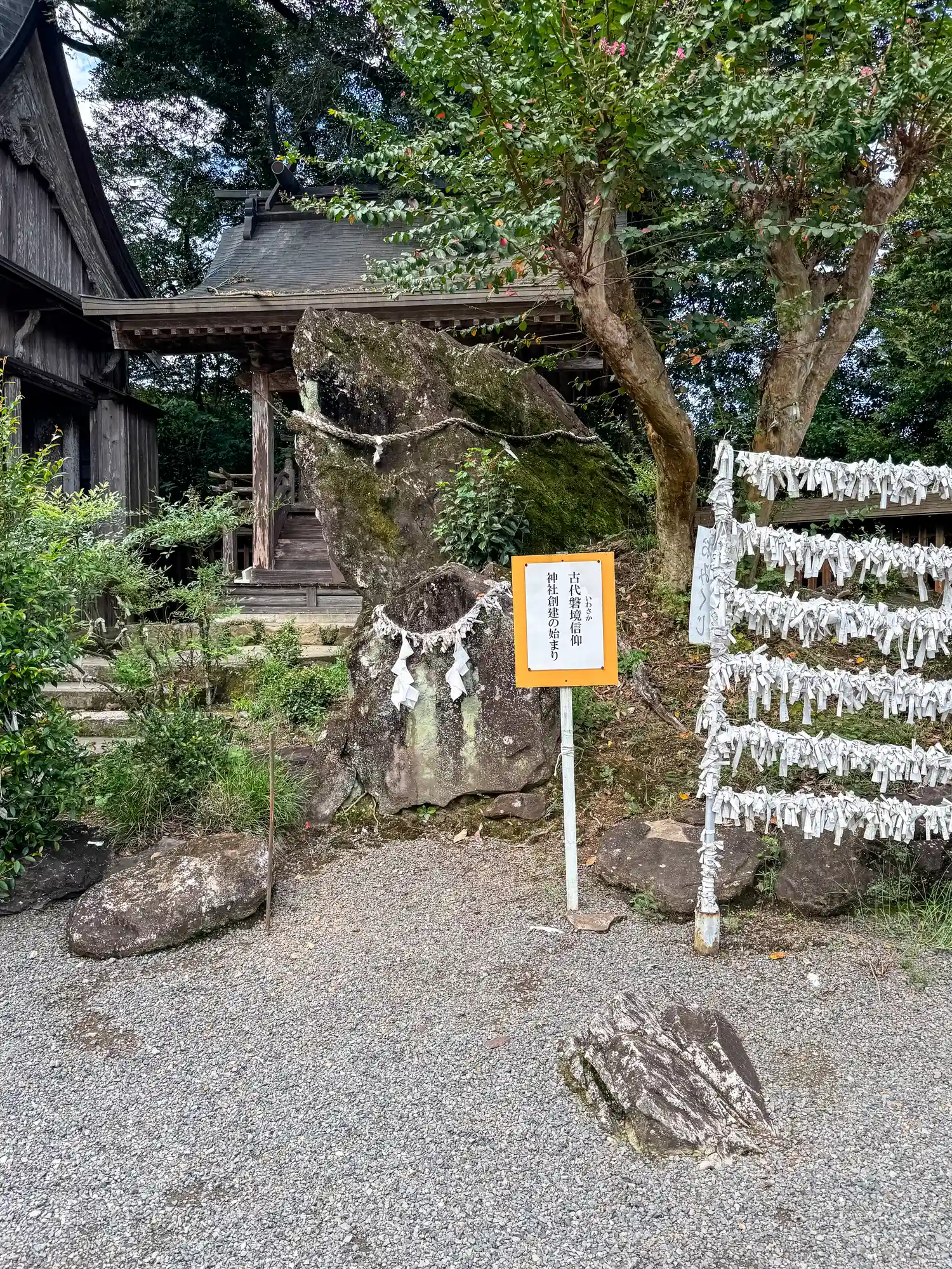 白山神社前にある、当社創建のもととなった古代信仰の<磐境(いわさか)>。