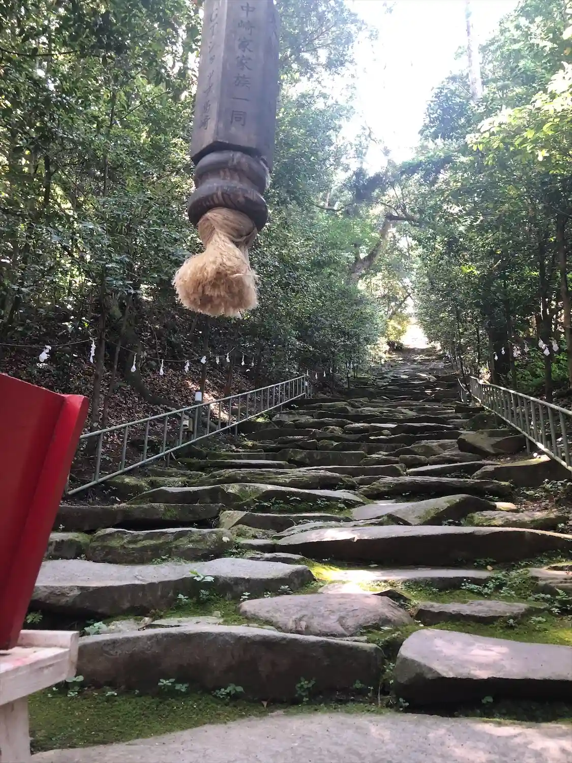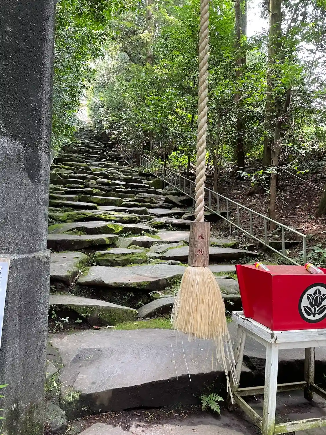 雨上がりであったので、石の階段がとても怖かったです。「行きはよいよい帰りは怖い」で滑らないように変…
