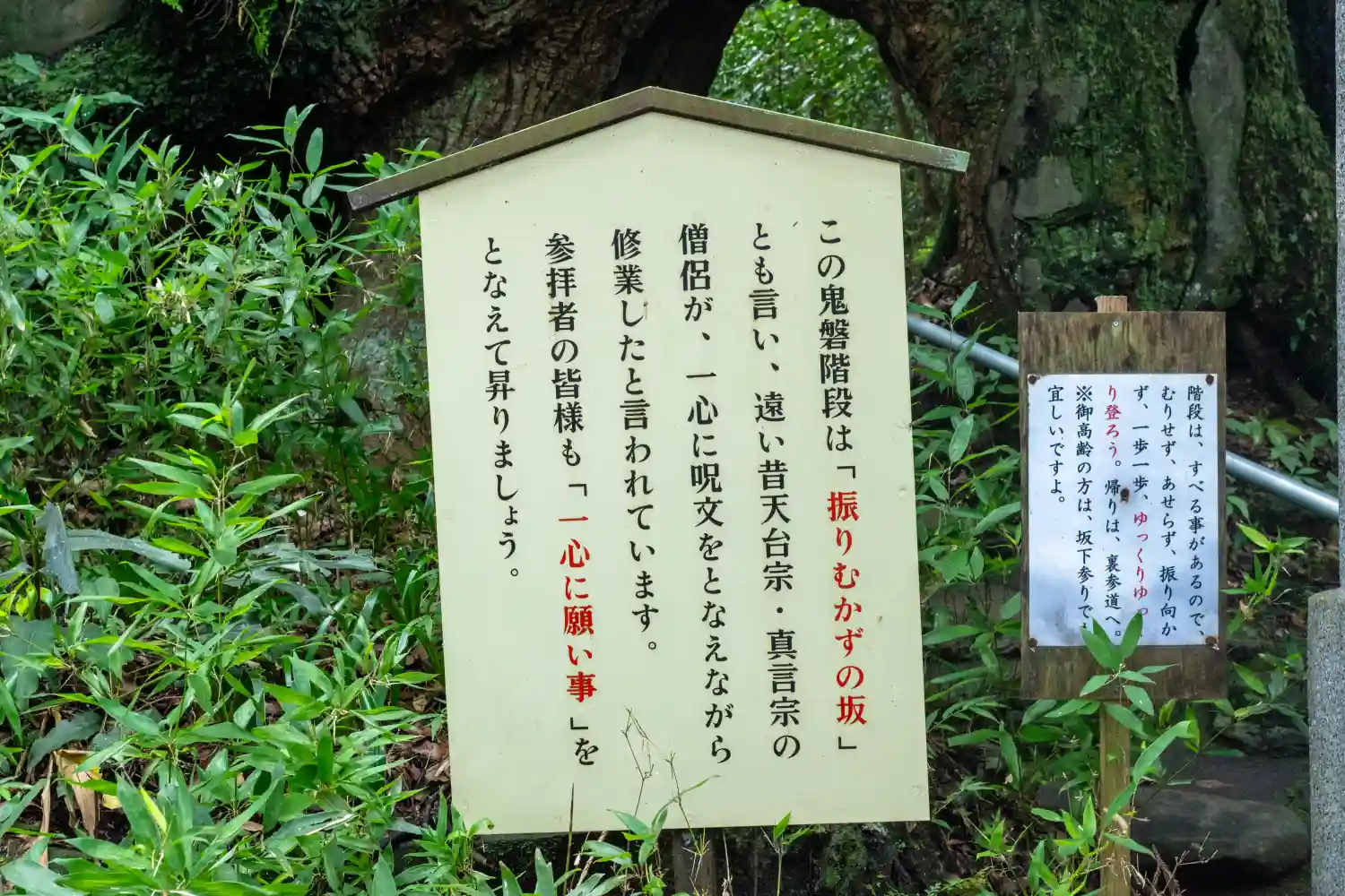 鬼磐階段は、振り向かずに、心を込め願い事をとなえながら登ると願いが叶うと言われていて、『振り向かずの坂』とも言われているようです。。
