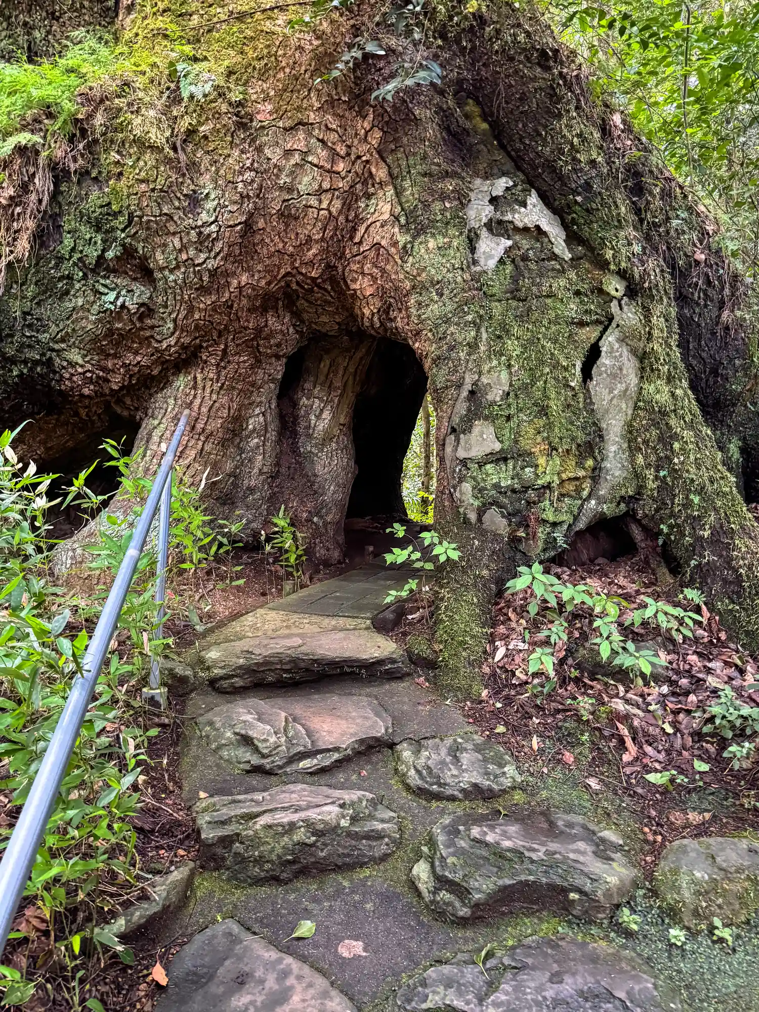 大楠の根本には空洞が。トンネルをくぐると御利益があるみたい。