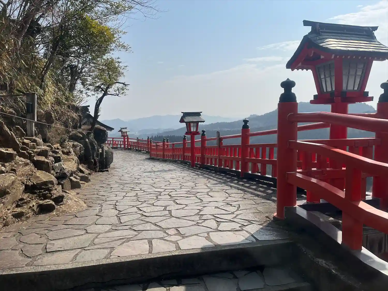 多くの献燈が並んだ階段をひたすら登り、到着した霞神社から見る景色は爽快でした。