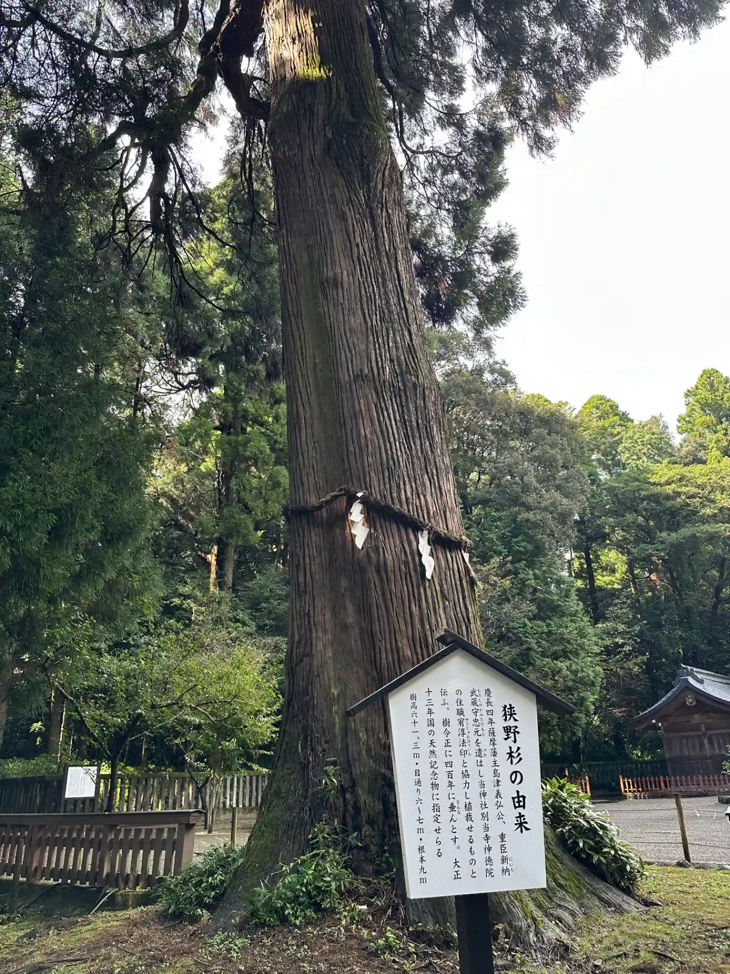 霧島山を御神体とし修験道の行場として崇敬された「霧島六社権現」の一社です。社名の「狭野」は初代神武天皇さまの幼名に因んでおり、神武天皇さまの生誕地として創建されたといわれています。また一説には霧島山の頂上に鎮座していましたが噴火によって現在地へ遷座したという霧島に関連した伝承もあります。
