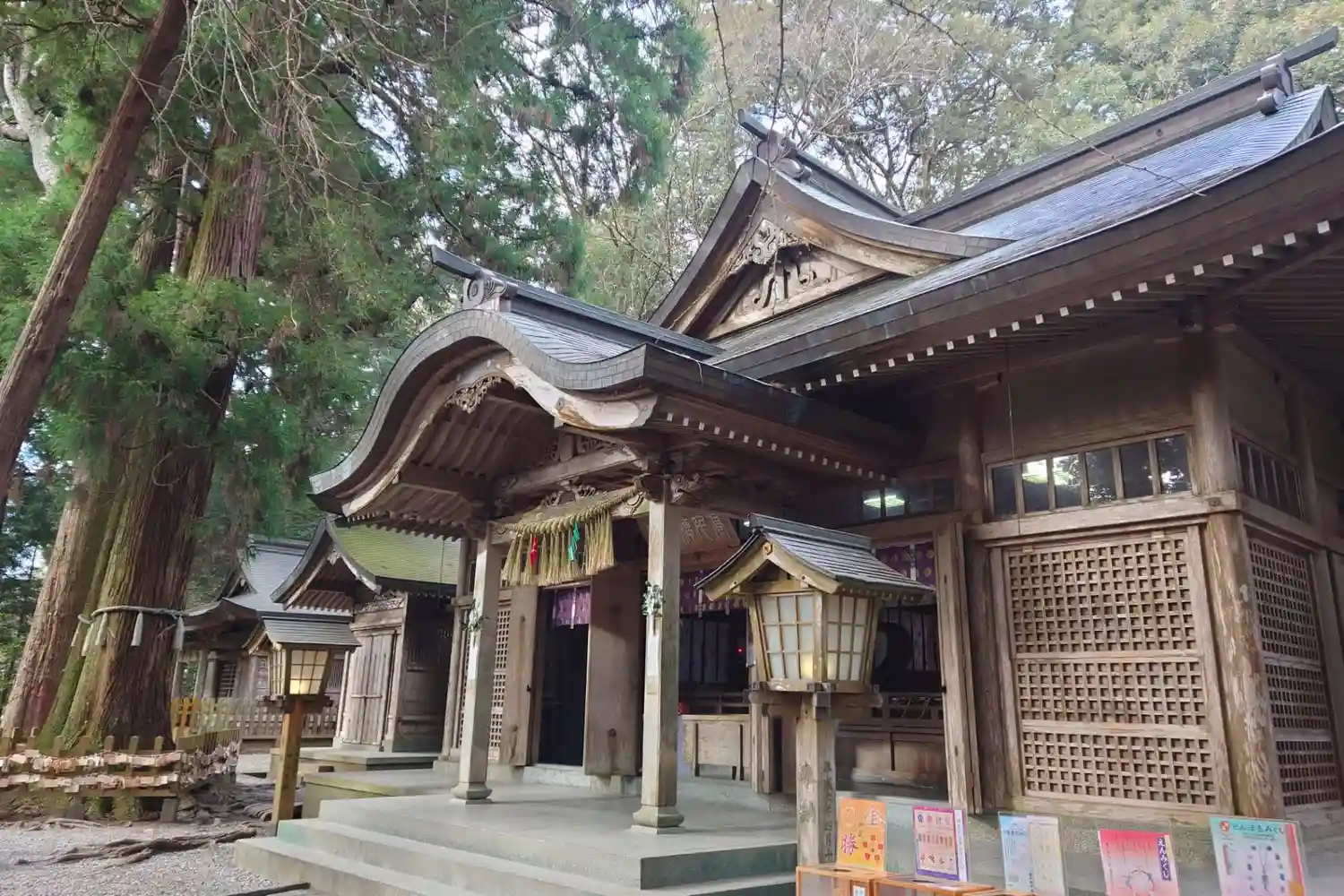 | ご祭神 | 《第一殿》 ○高千穂皇神 ・天津彦彦火瓊瓊杵尊 ・木花開耶姫命 ・彦火火出見尊 ・豊玉姫命 ・鵜葺草葺不合尊 ・玉依姫命 《第二殿》 ○十柱大明神 ・三毛入野命 ・鵜目姫命 ・太郎命 ・二郎命 ・畝見命 ・照野命 ・大戸命 ・霊社命 ・浅良部命 ・三郎命 |