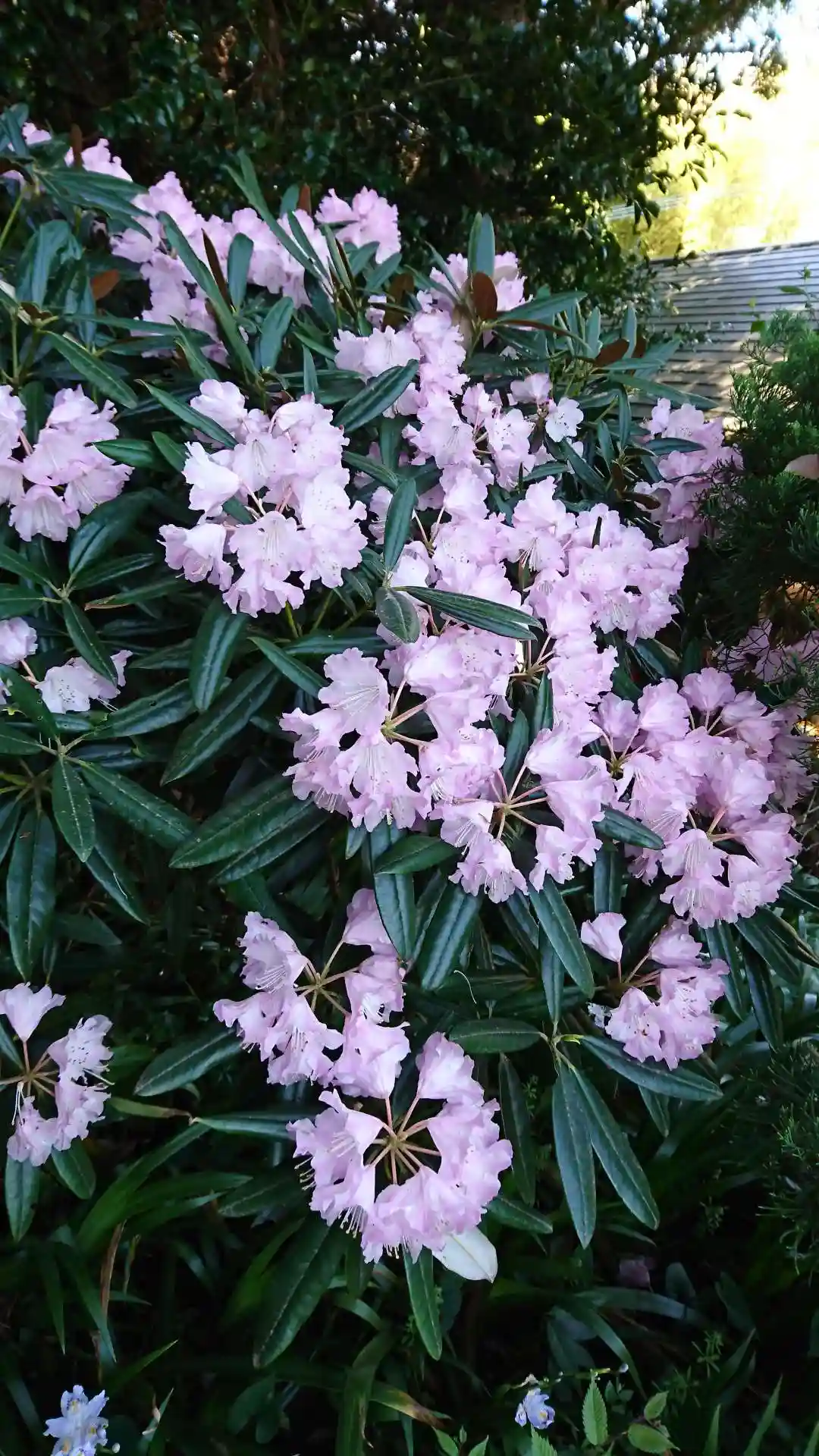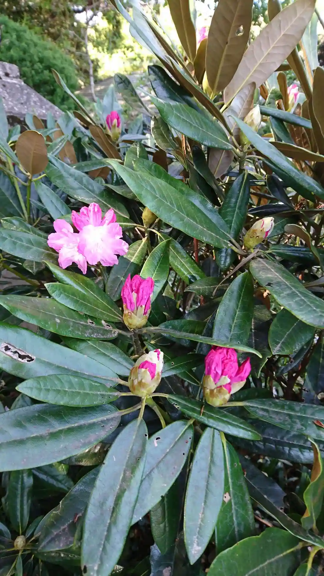 裏参道の入口には、薄桃色のシャクナゲがきれいに花を咲かせていました。