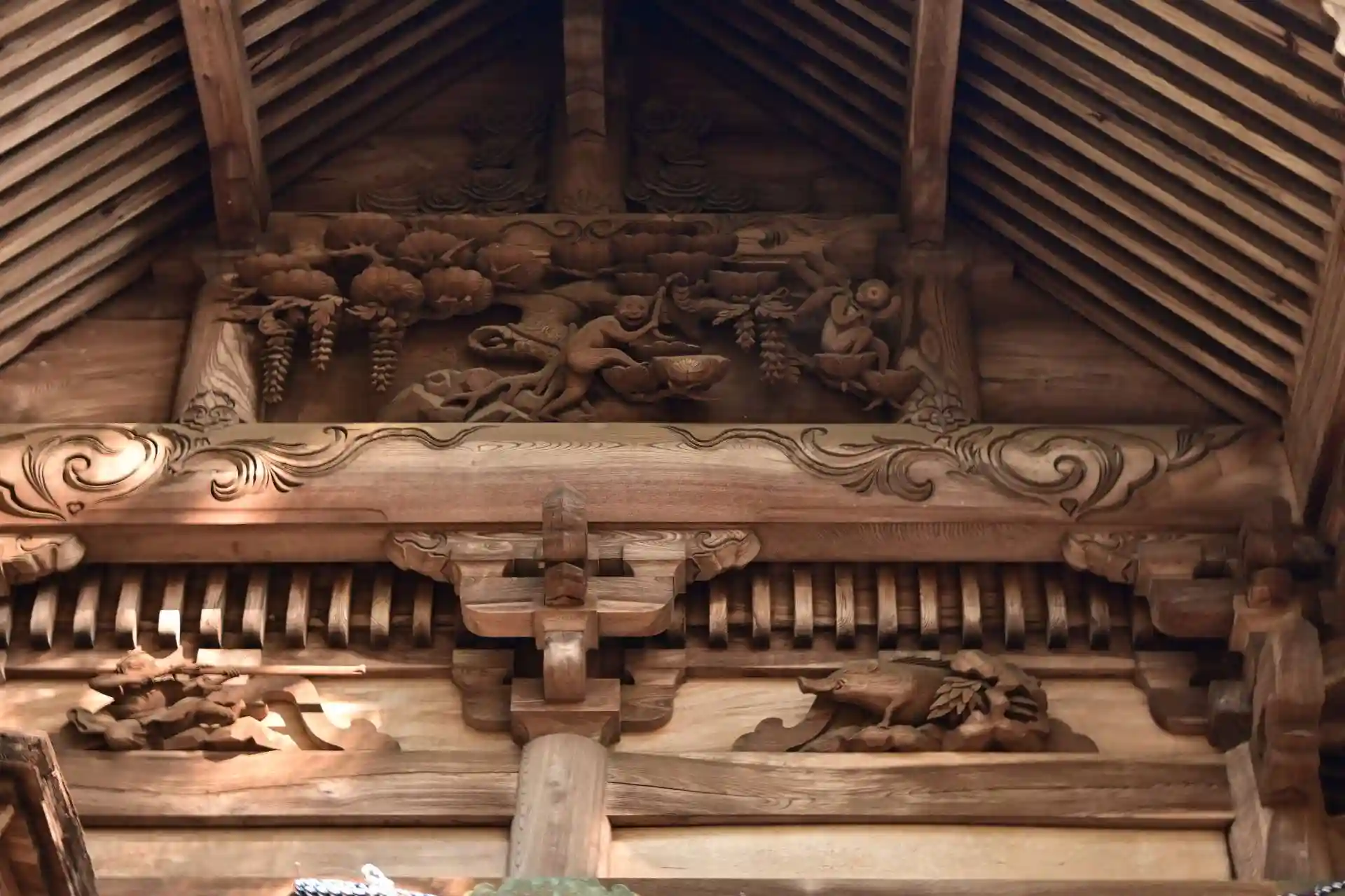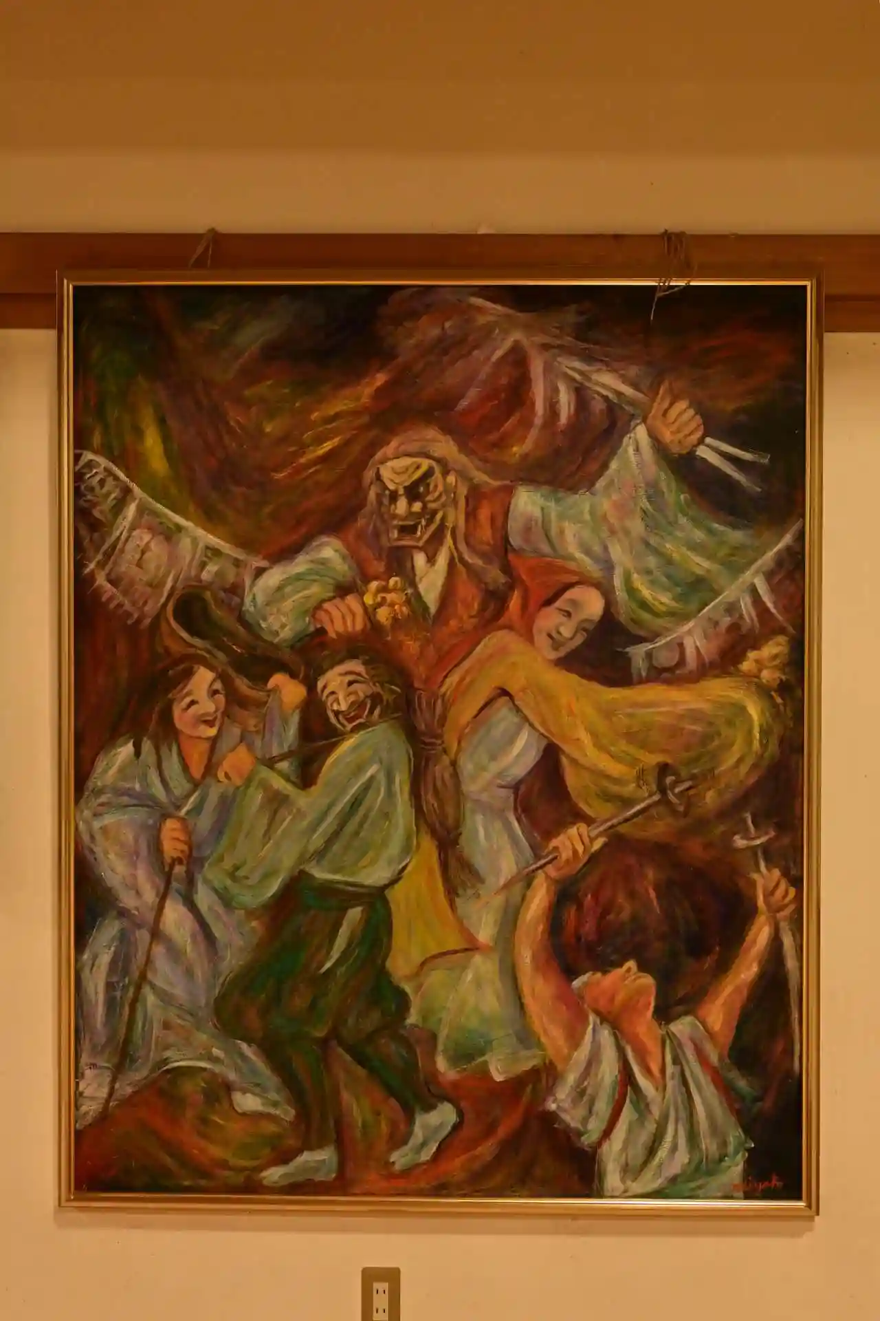 高千穂神社の御祭神の一神である三毛入野命(みけぬのみこと)が鬼八という悪い鬼を退治している様子。