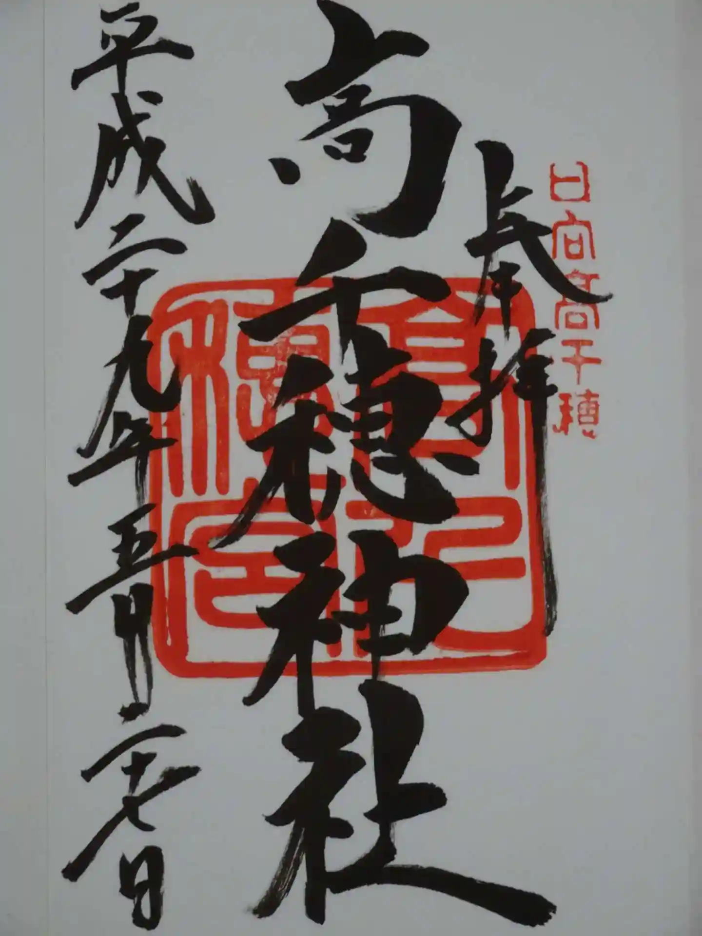 念願かなっての参拝でした。高千穂という場所と相まって、木々に囲まれた境内の雰囲気、社殿の見事さと印象的でした。