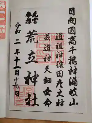 ![荒立神社の御朱印]()