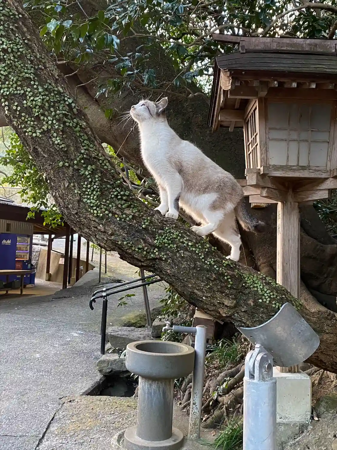 木が広がって伸びていて所々ささえられてます