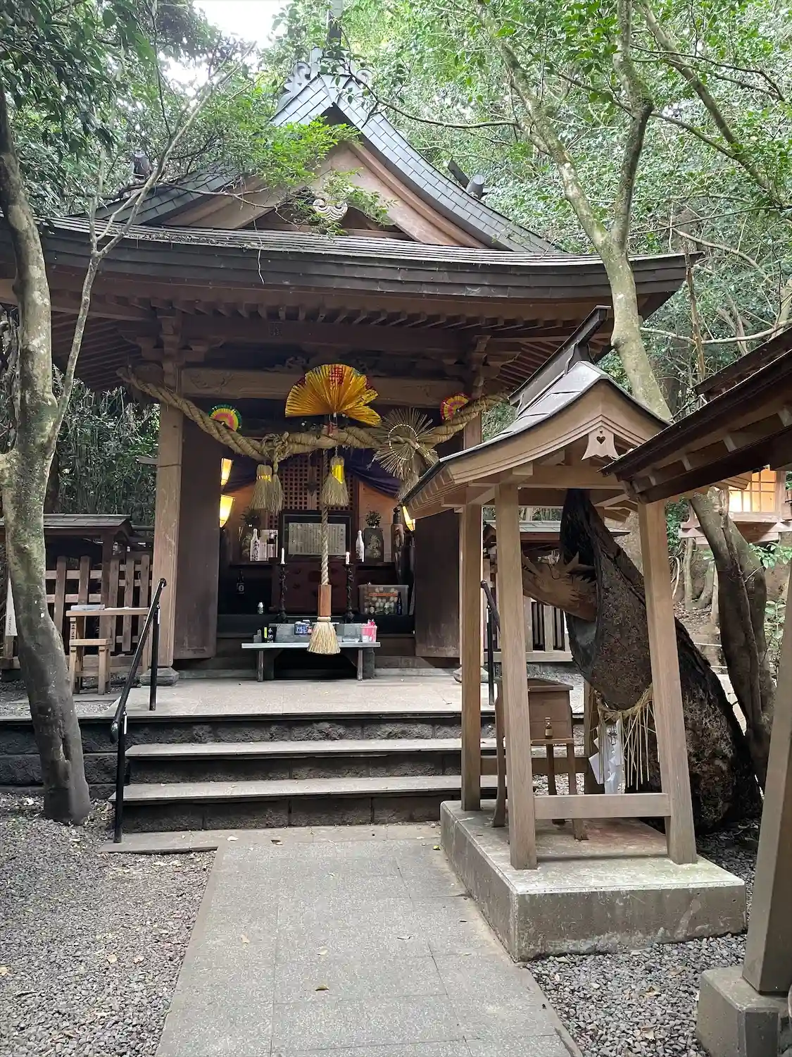 木々に覆われている社殿