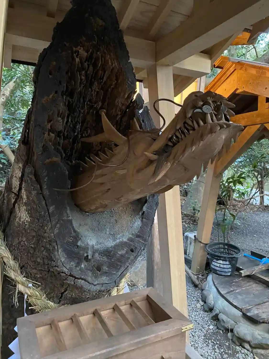 御神木の根が井戸の中まで張り巡られていて、お…