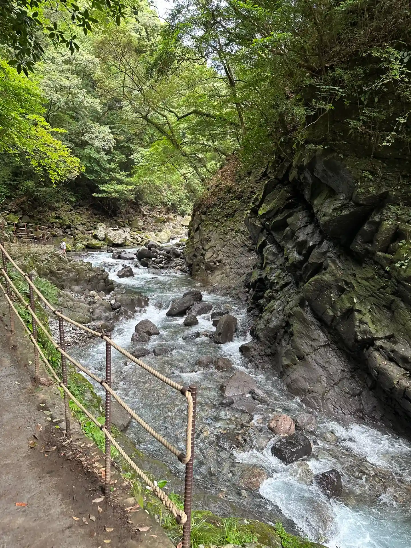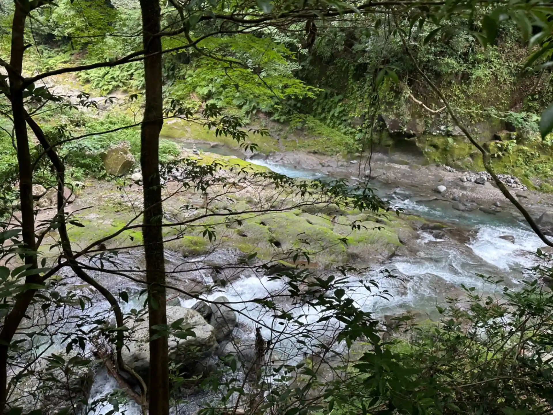 この川のせせらぎ…じゃないな。激流音が逆に涼しく感じます。