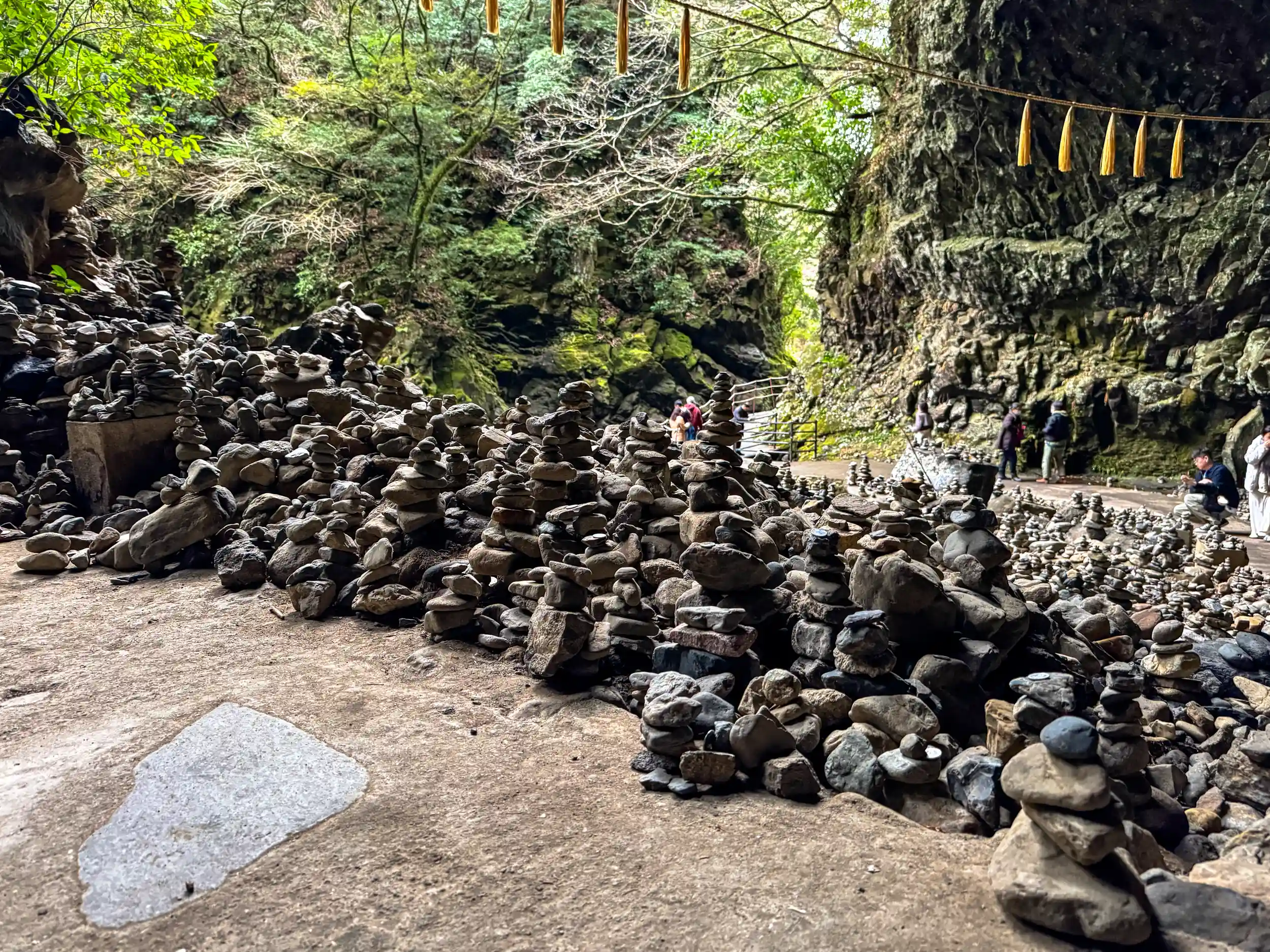 冒頭の通り八百万の神が集まり相談を行った場所ということもあり、各所に積まれた石の山が壮観なスケールを伝えてきています。