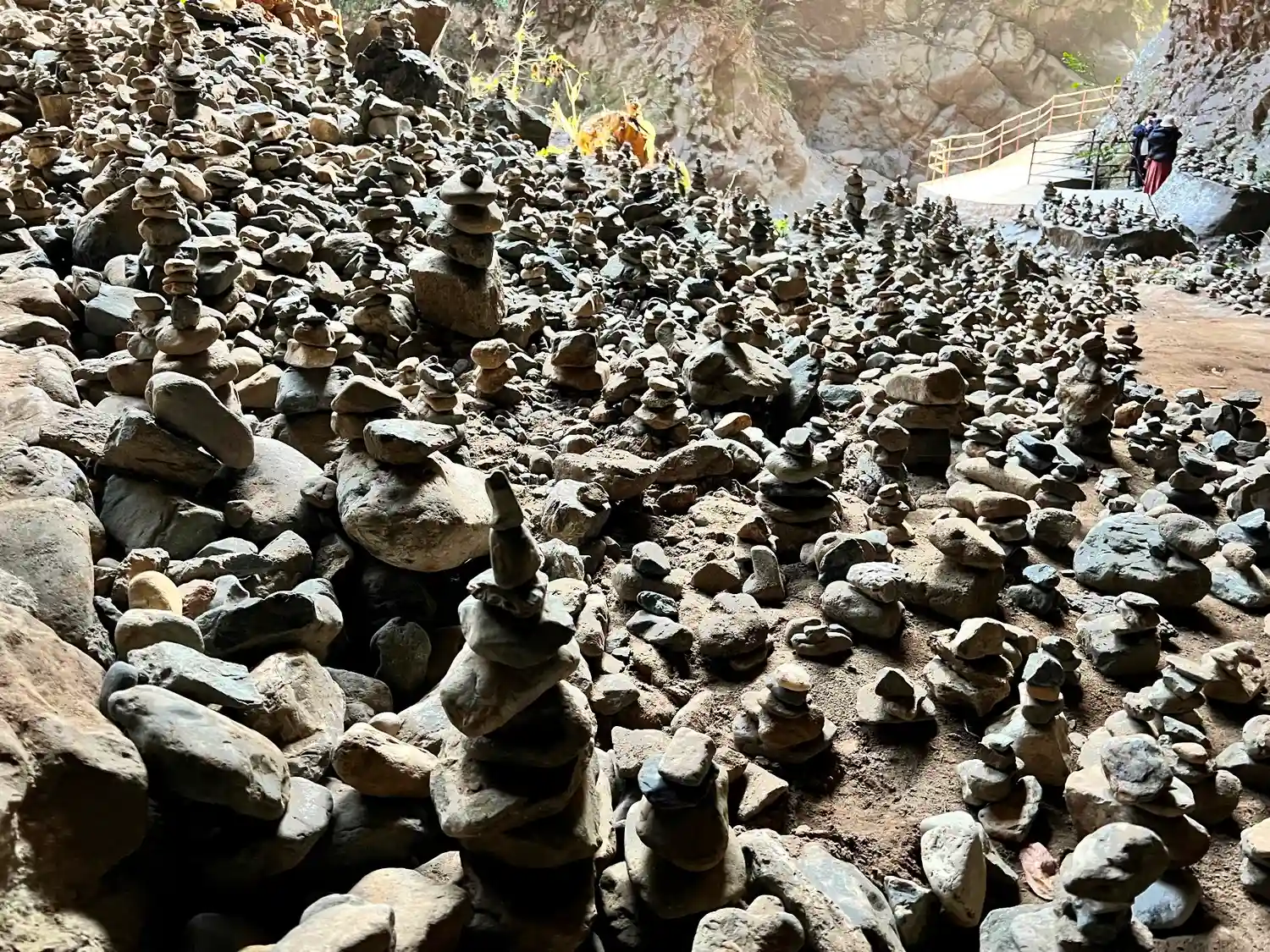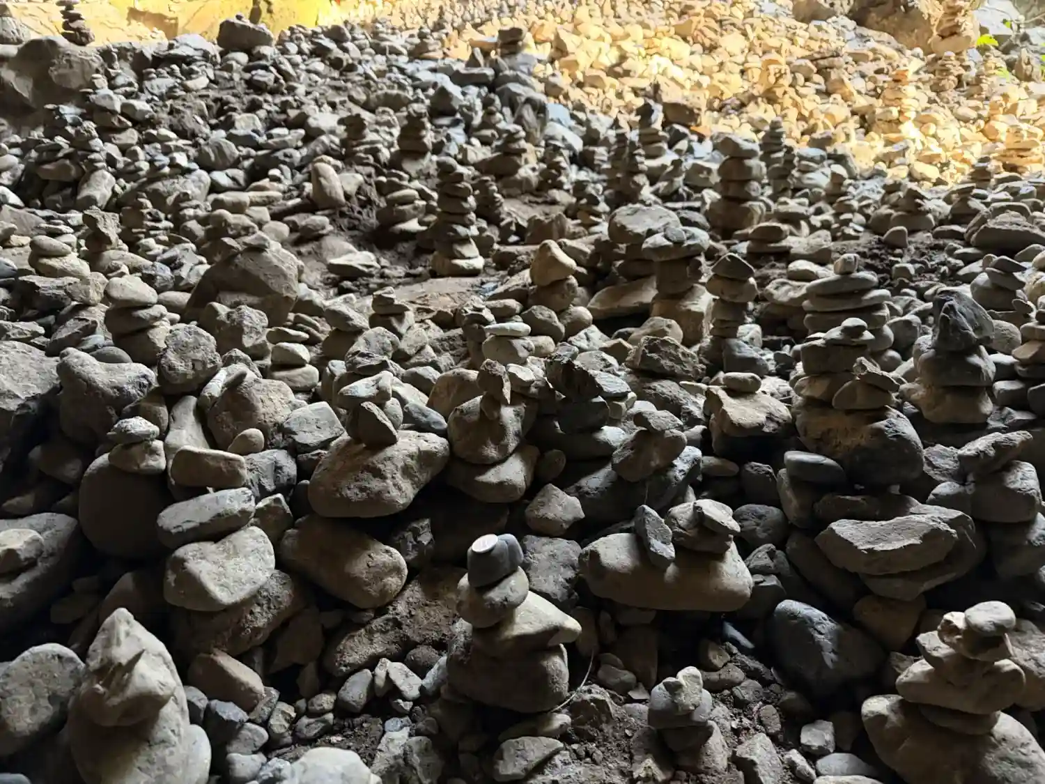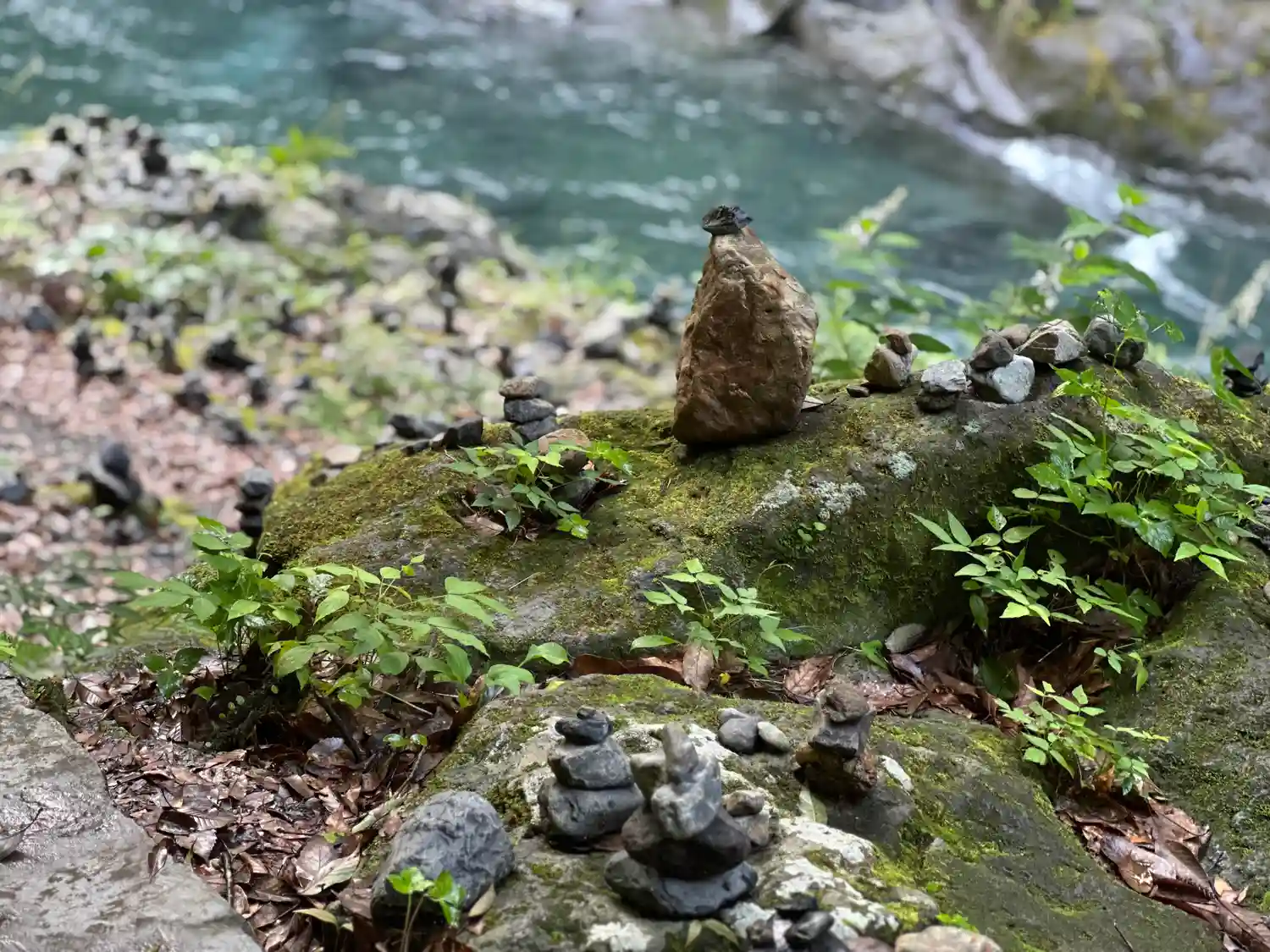 河原の小石はすべてというほど願いをこめて積み重ねられていました。私の地方では、死んだ子供を思ってする風習なので(賽の河原)少し恐く感じました。