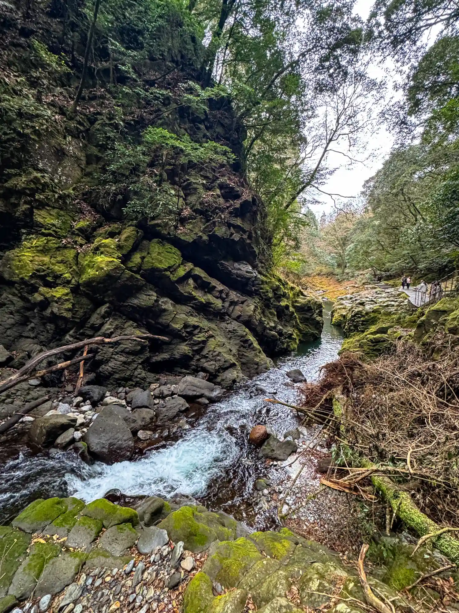 川岸自体が巨大な岩でできている場所もある。