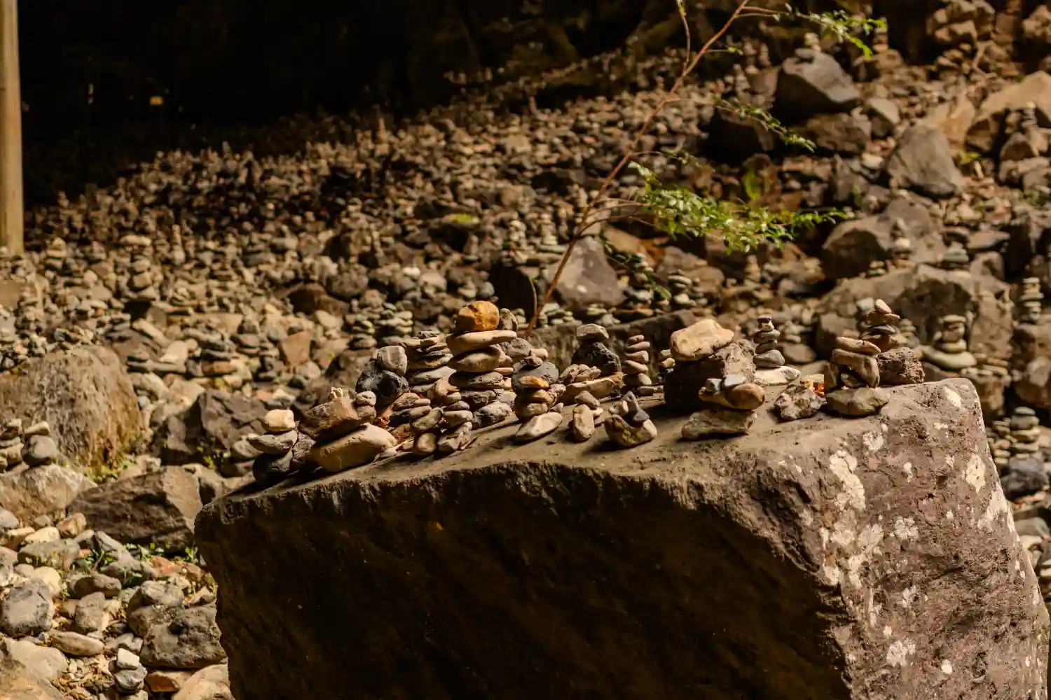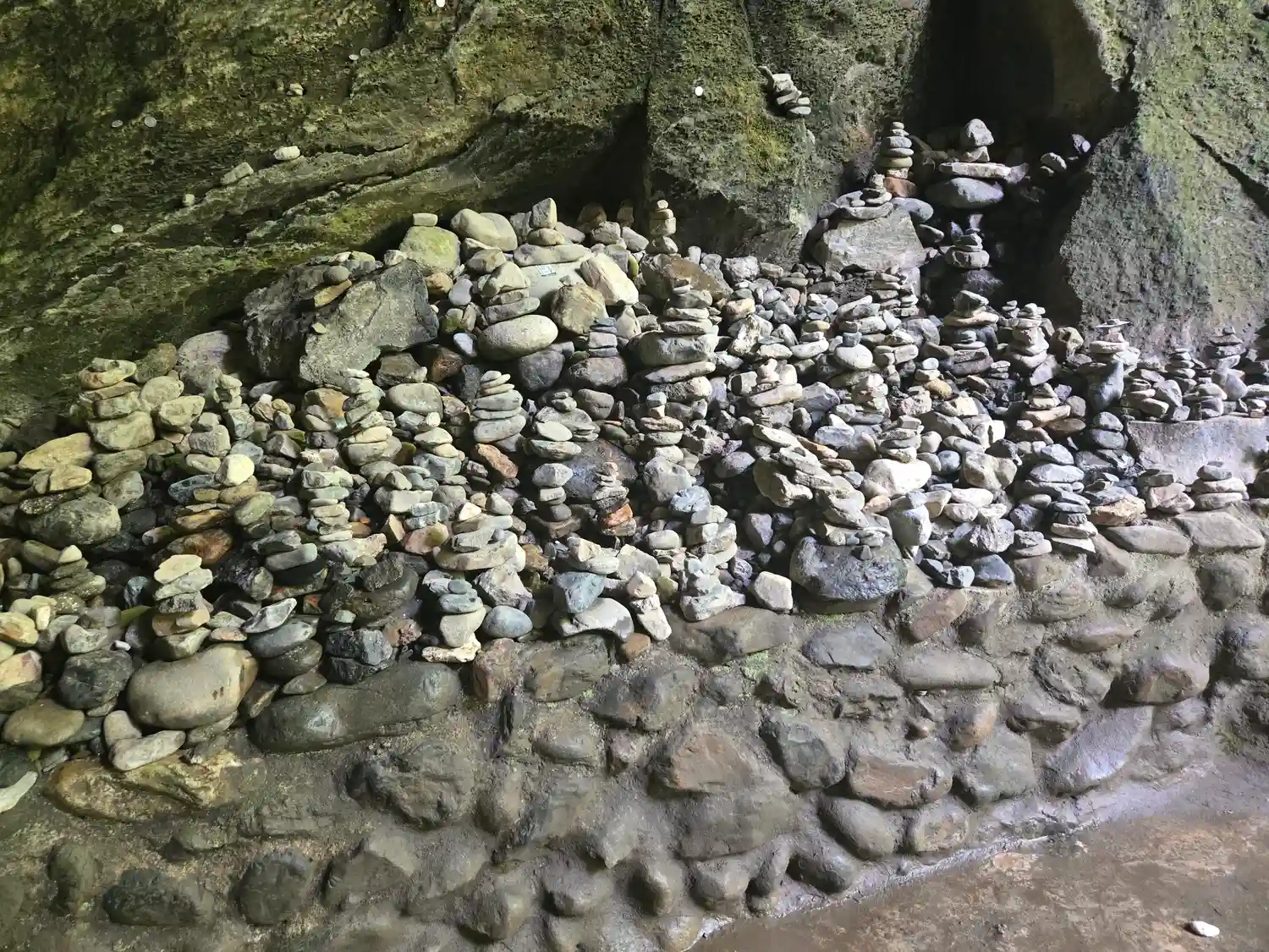 賽の河原かと思わせるほどに石が積まれています。