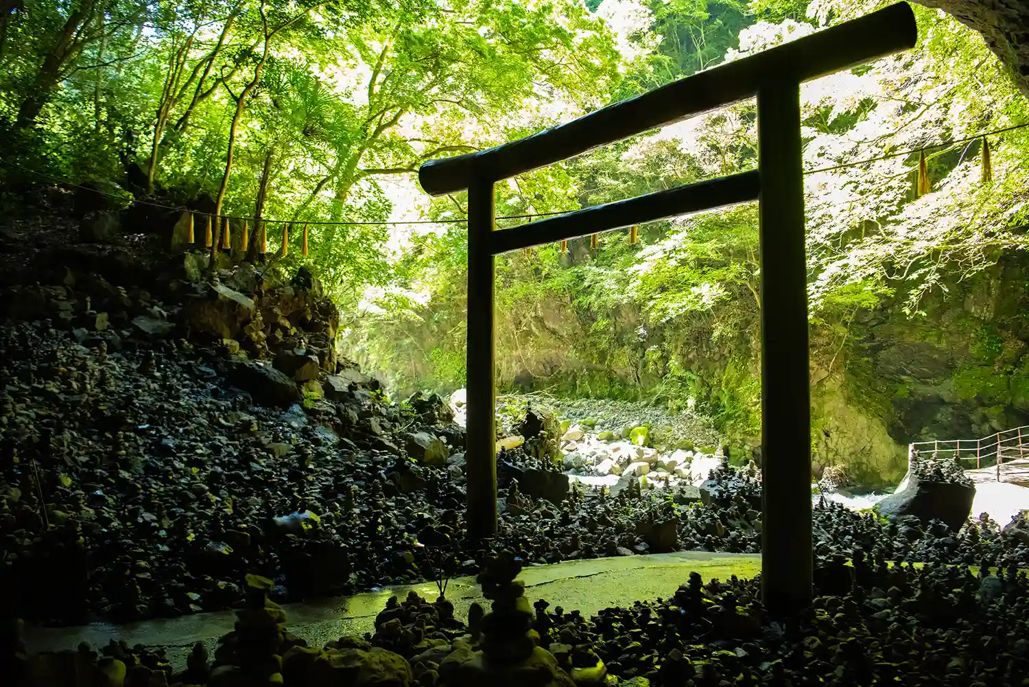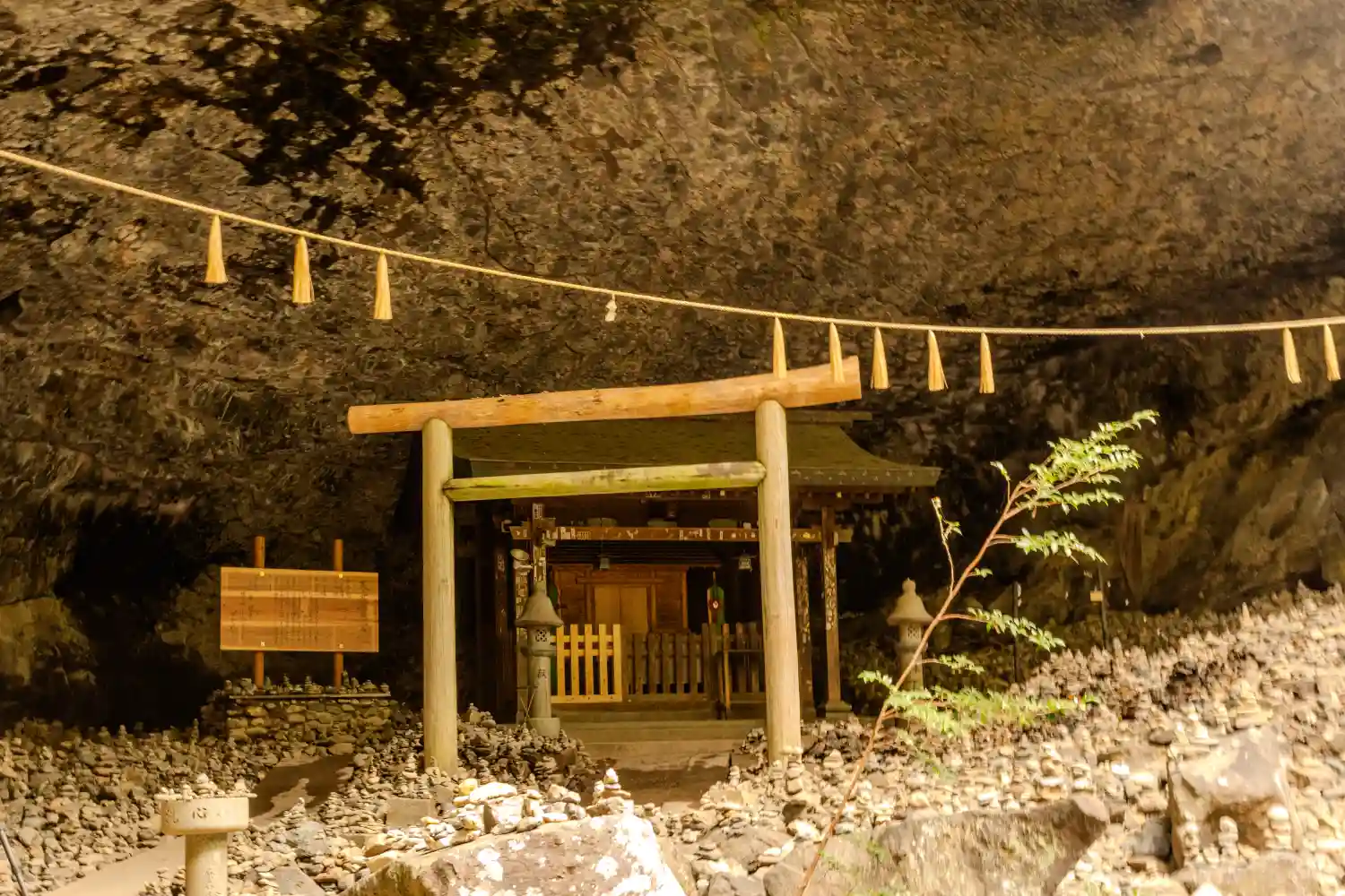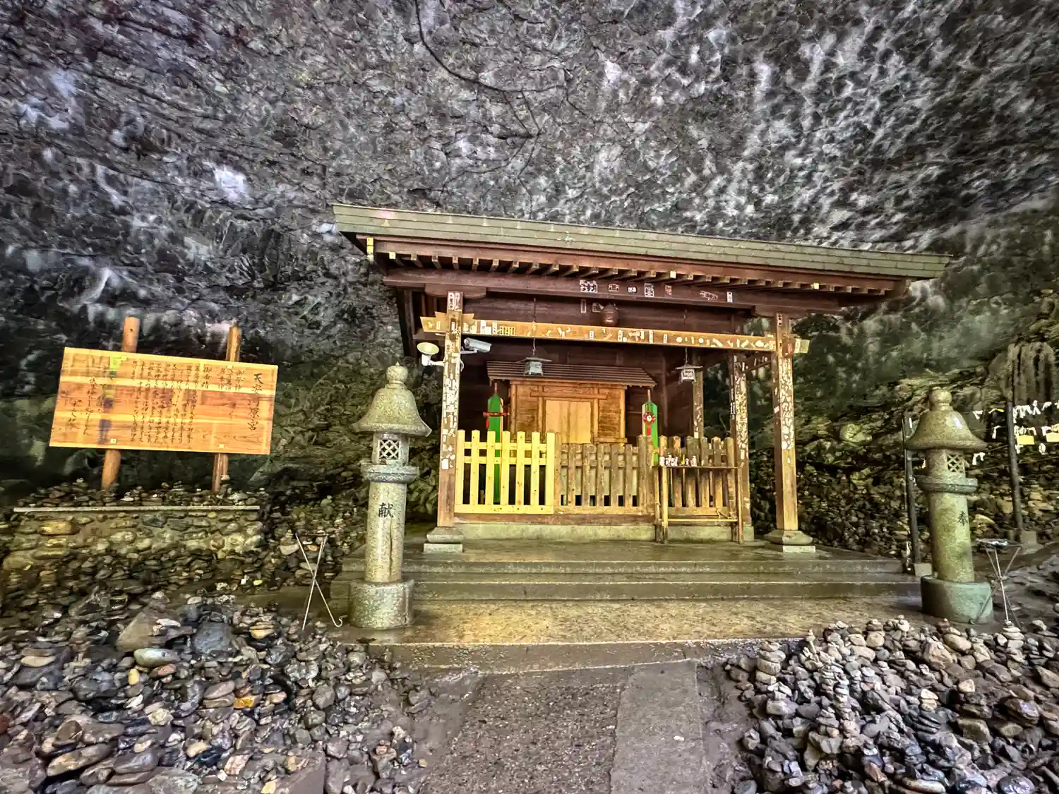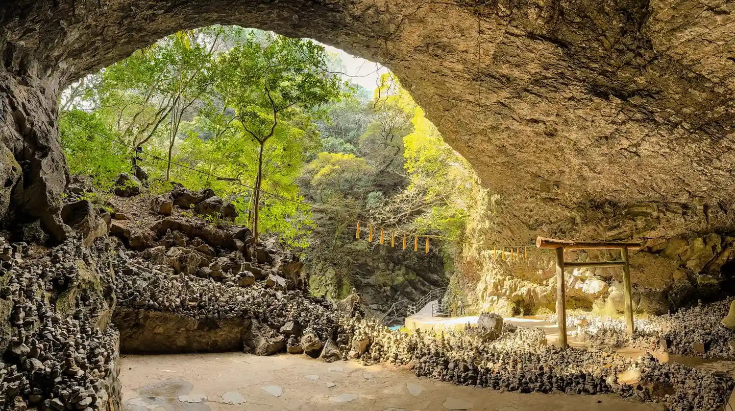 天照大神が天岩戸にお隠れになった際、八百万の神が相談したとされる洞窟にある天安河原宮…