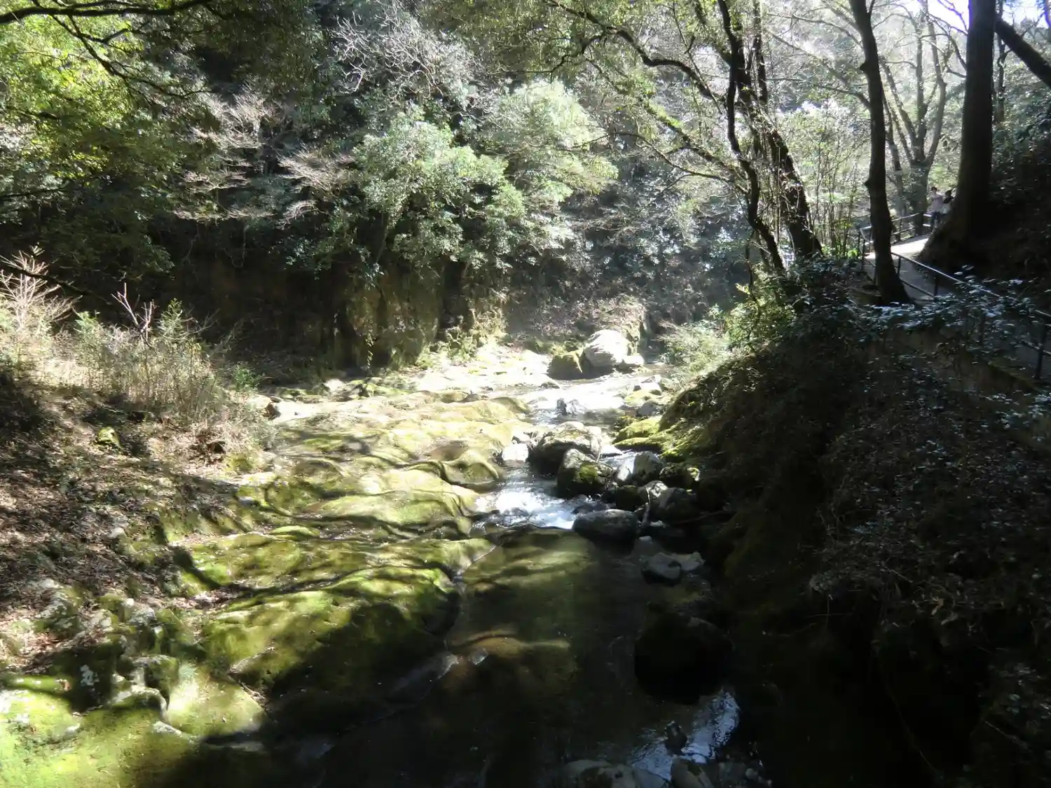 太鼓橋の上から上流を臨みました。