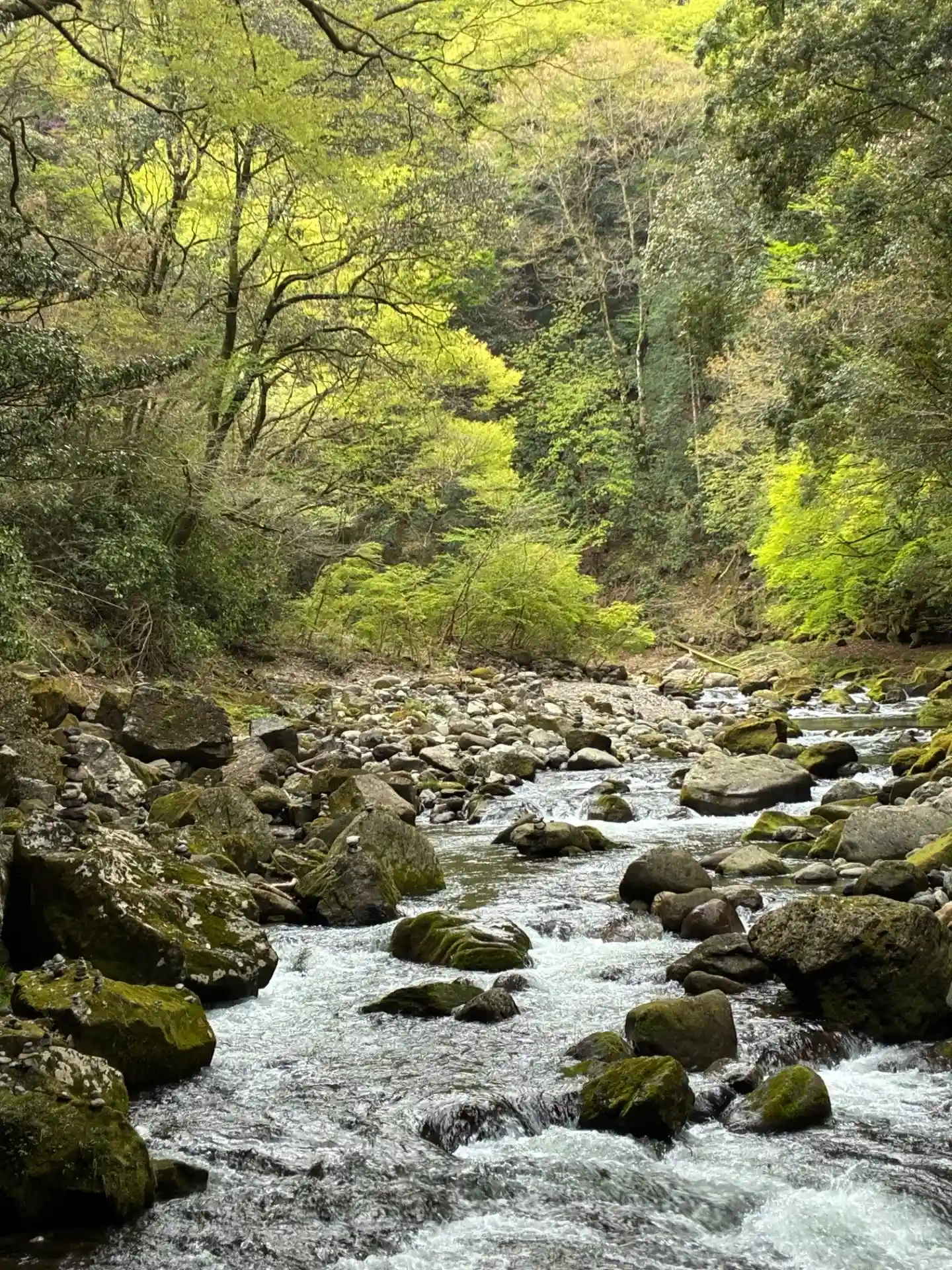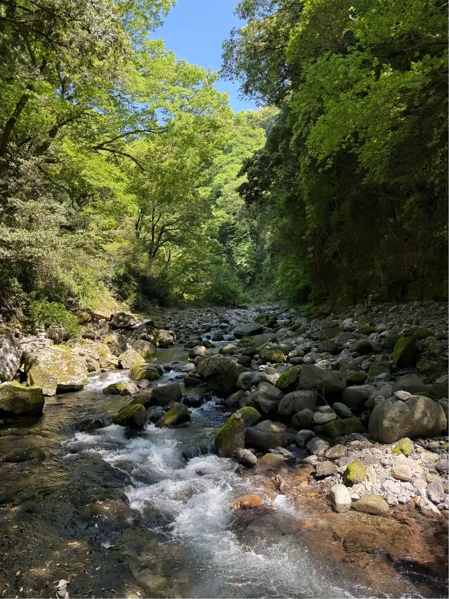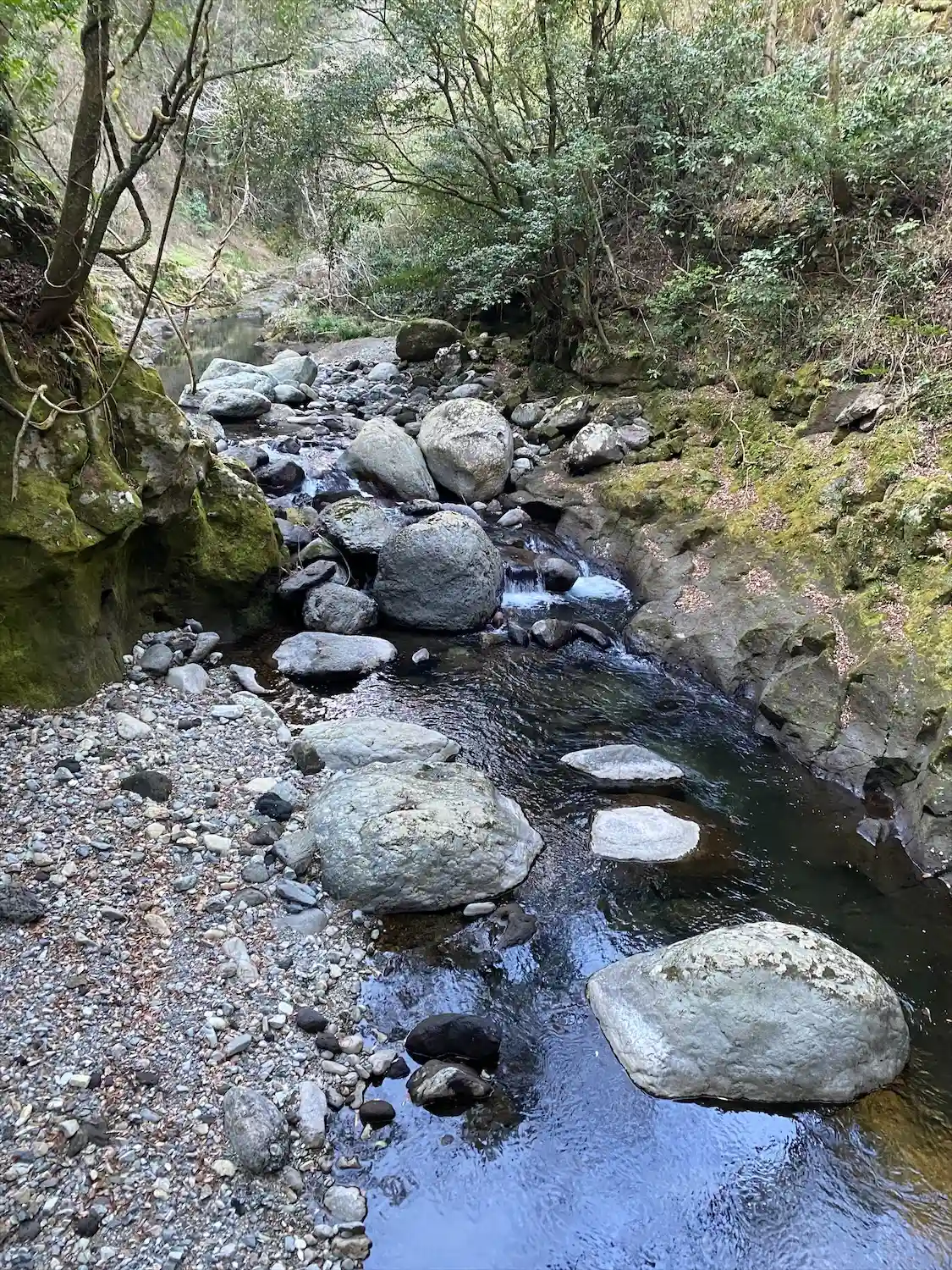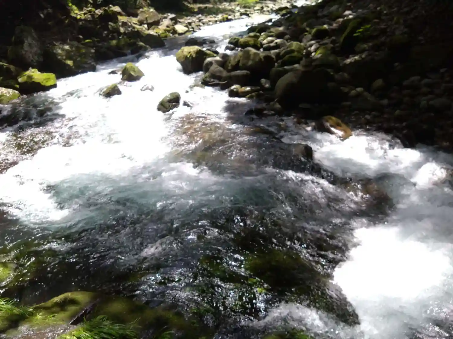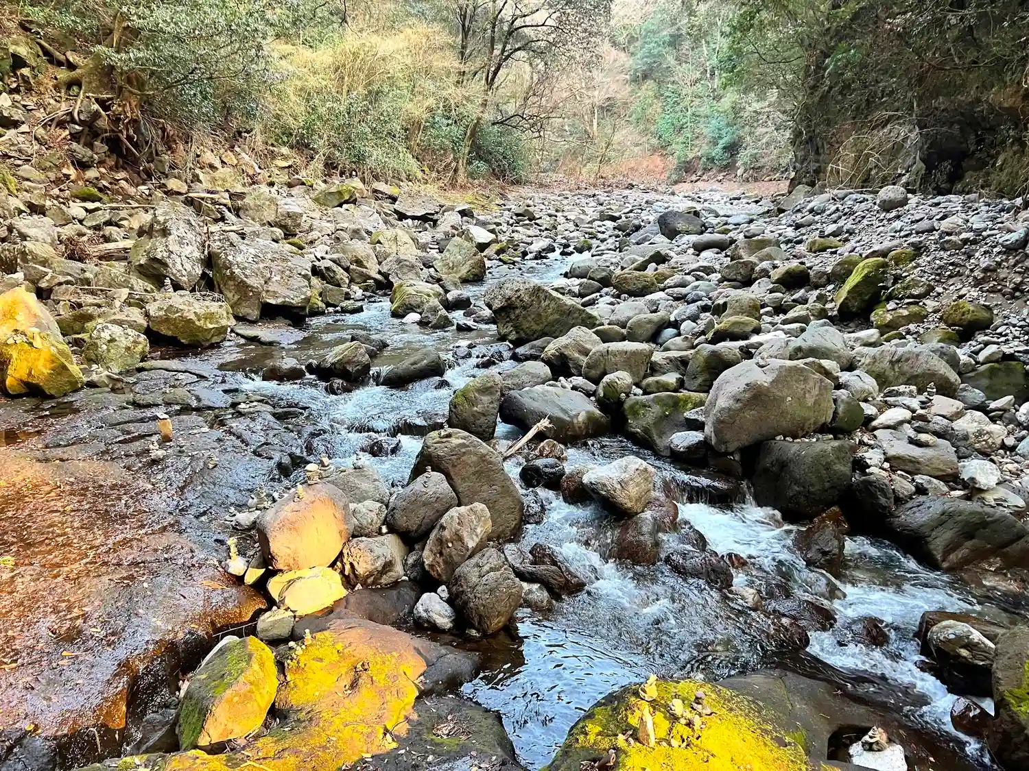 どこから運ばれてきたのか、川底には巨大な岩がごろごろしている。